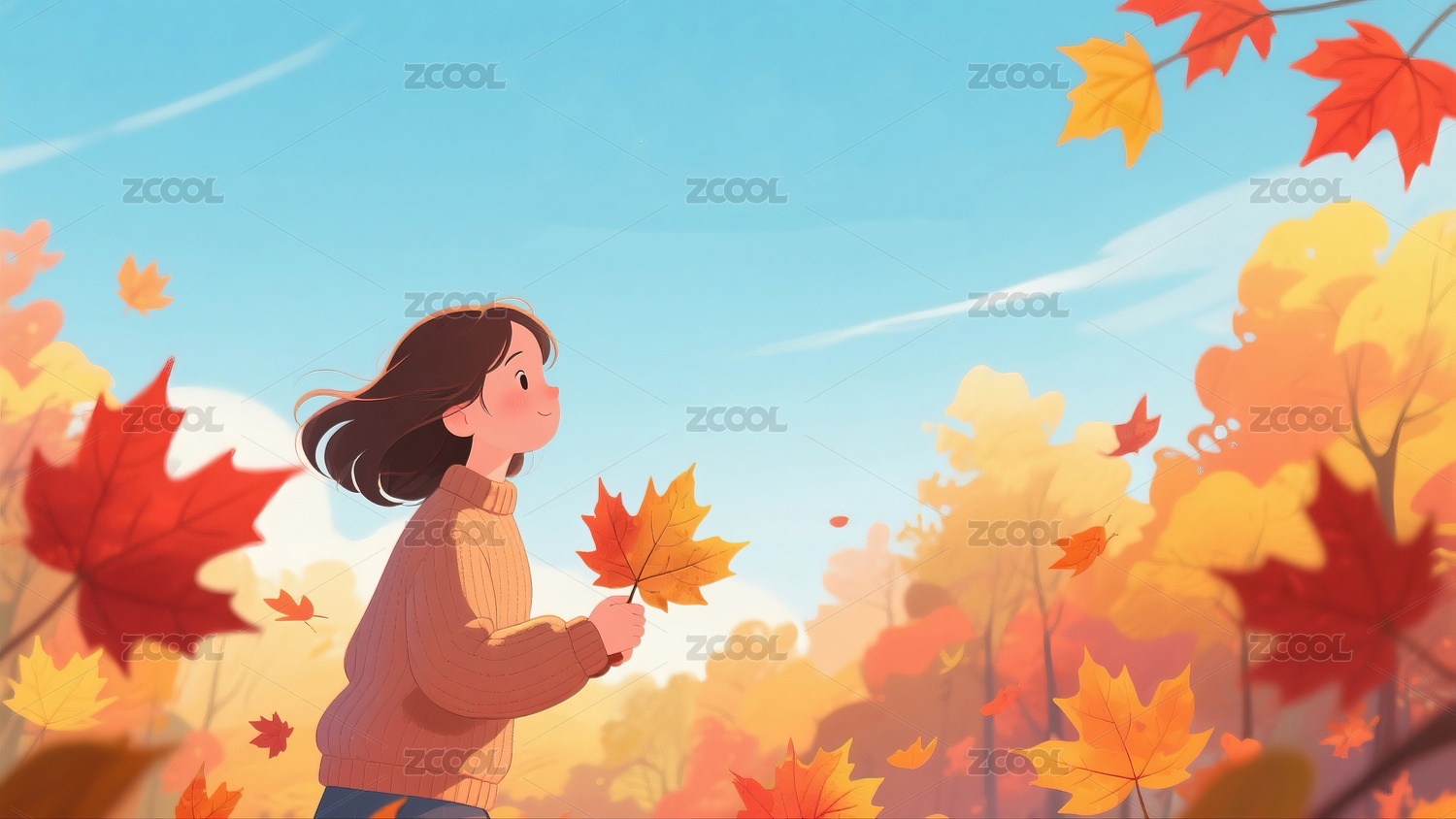 秋天枫叶和女孩