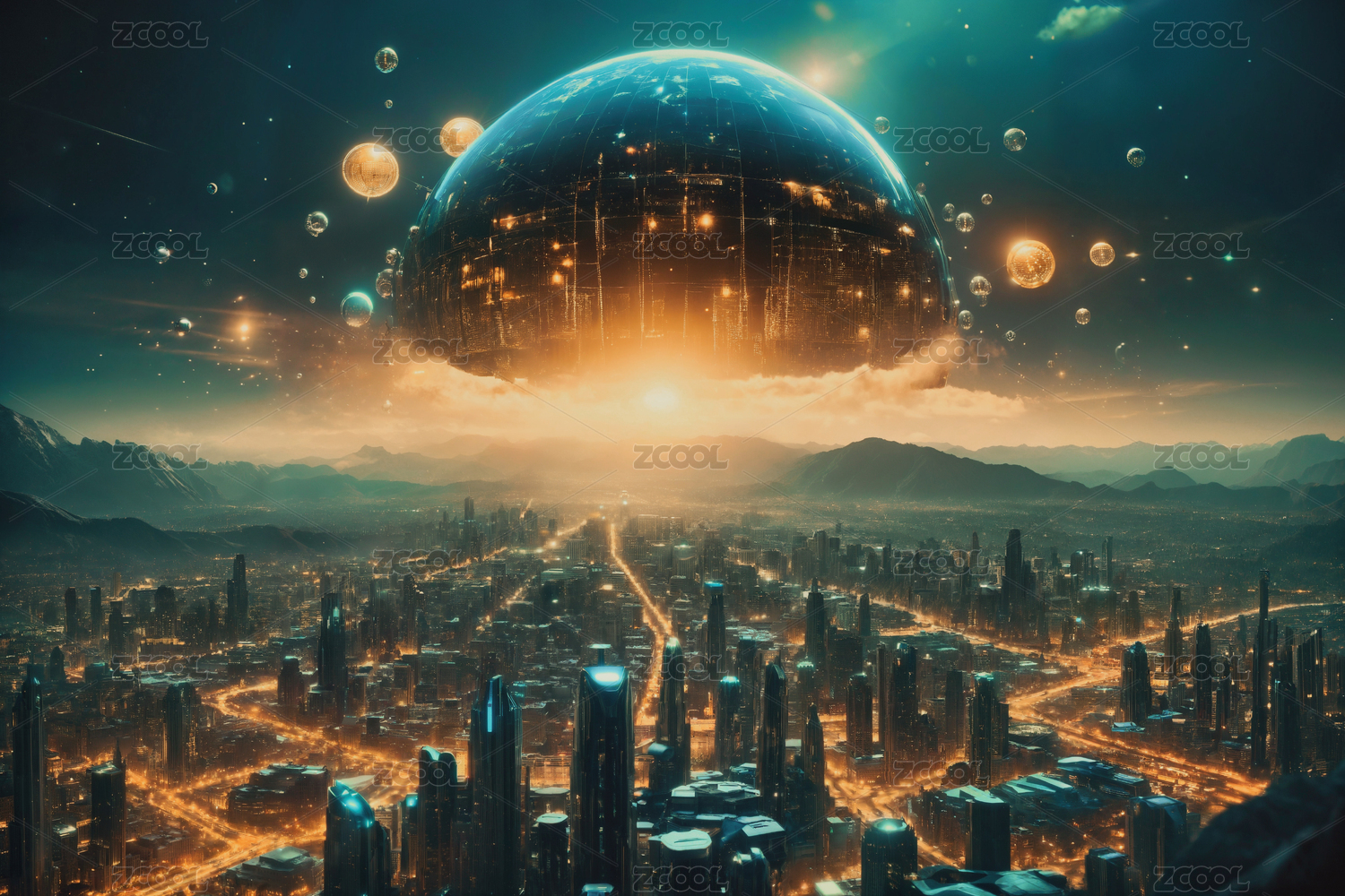 城市,星际,景观,太空,行星,星光,夜景,建筑,灯光,道路