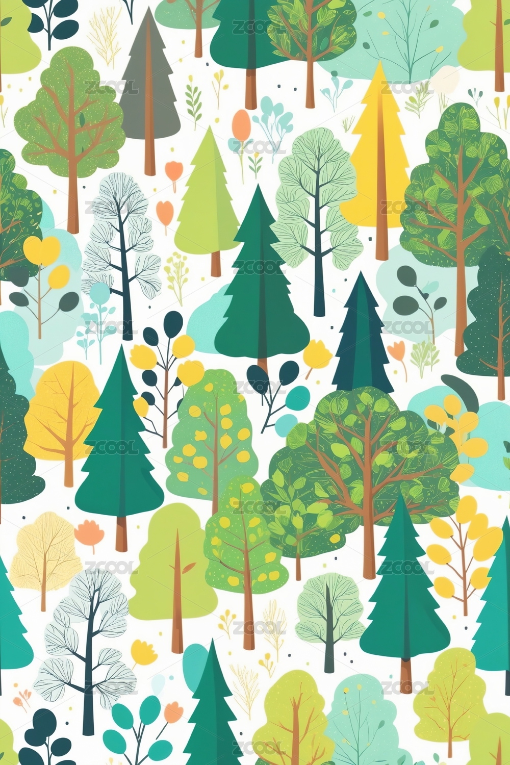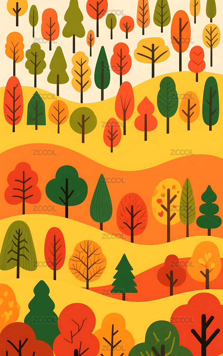 树林,树木,插画,彩色,绿色,黄色,橙色,蓝色,树冠,树干