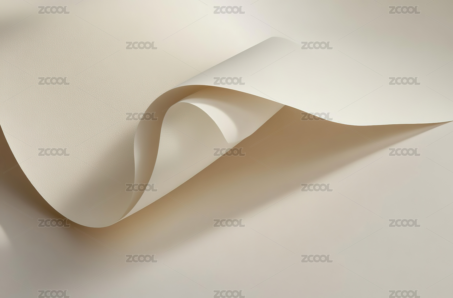 纸张卷曲柔和光影构成抽象画面
