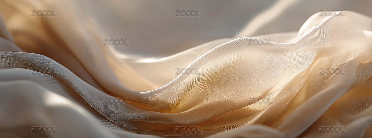 米黄色丝绸的特写光影交织呈现柔和的质感