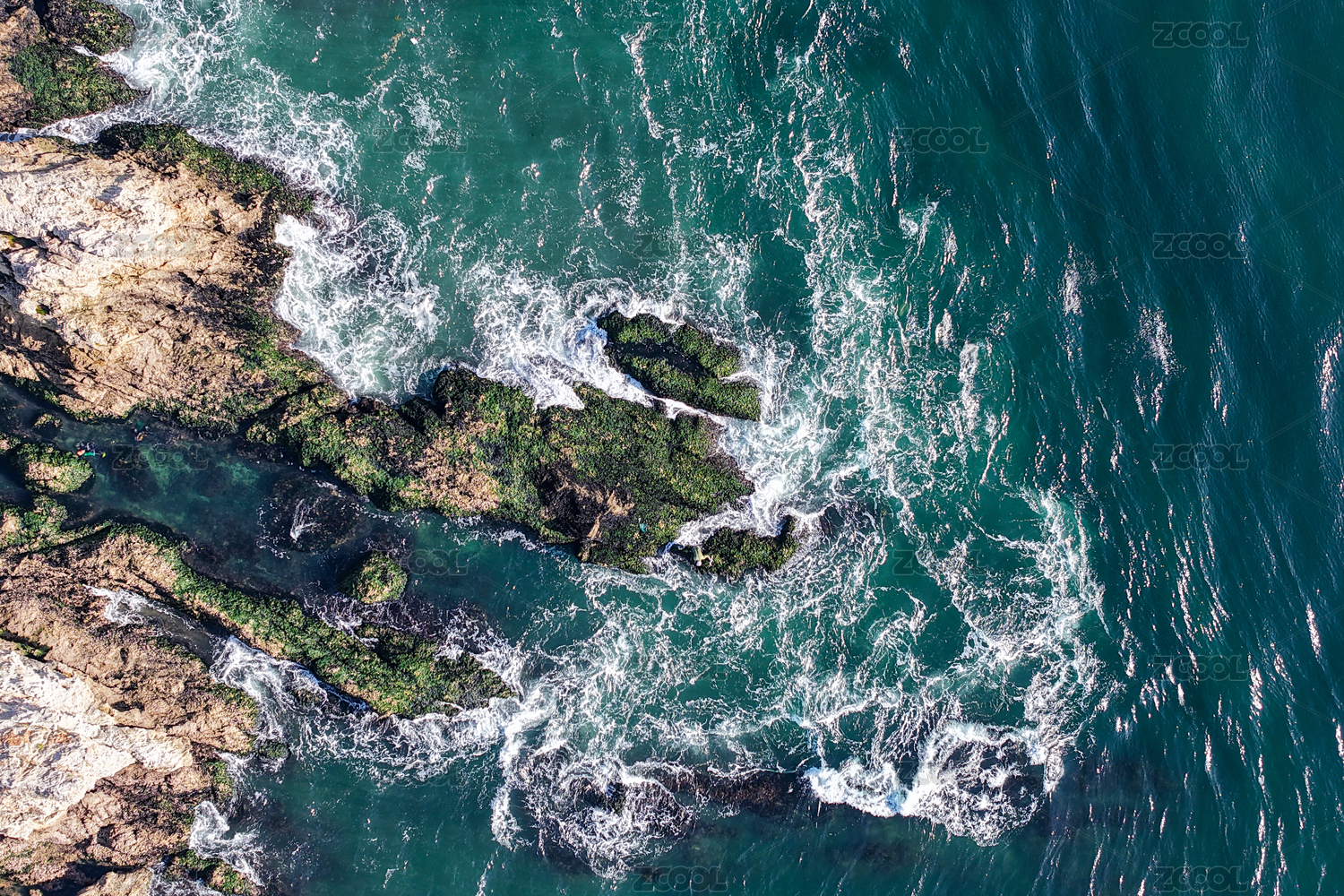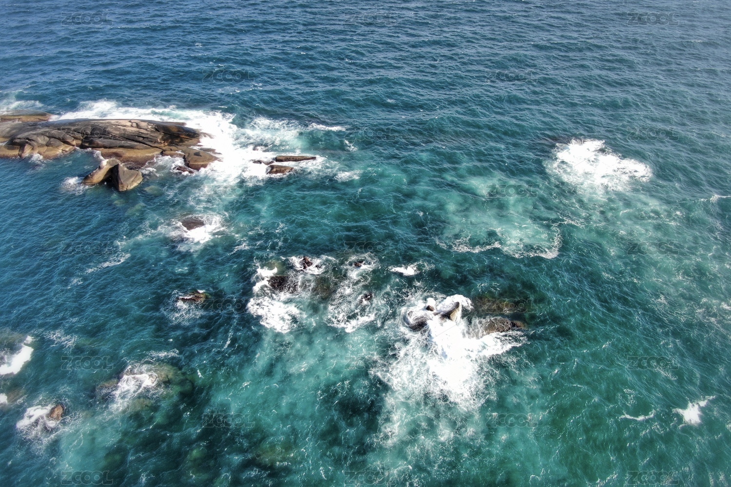 海浪白色浪花拍打礁石