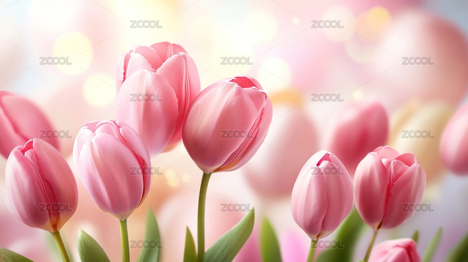 柔和光斑下的梦幻郁金香