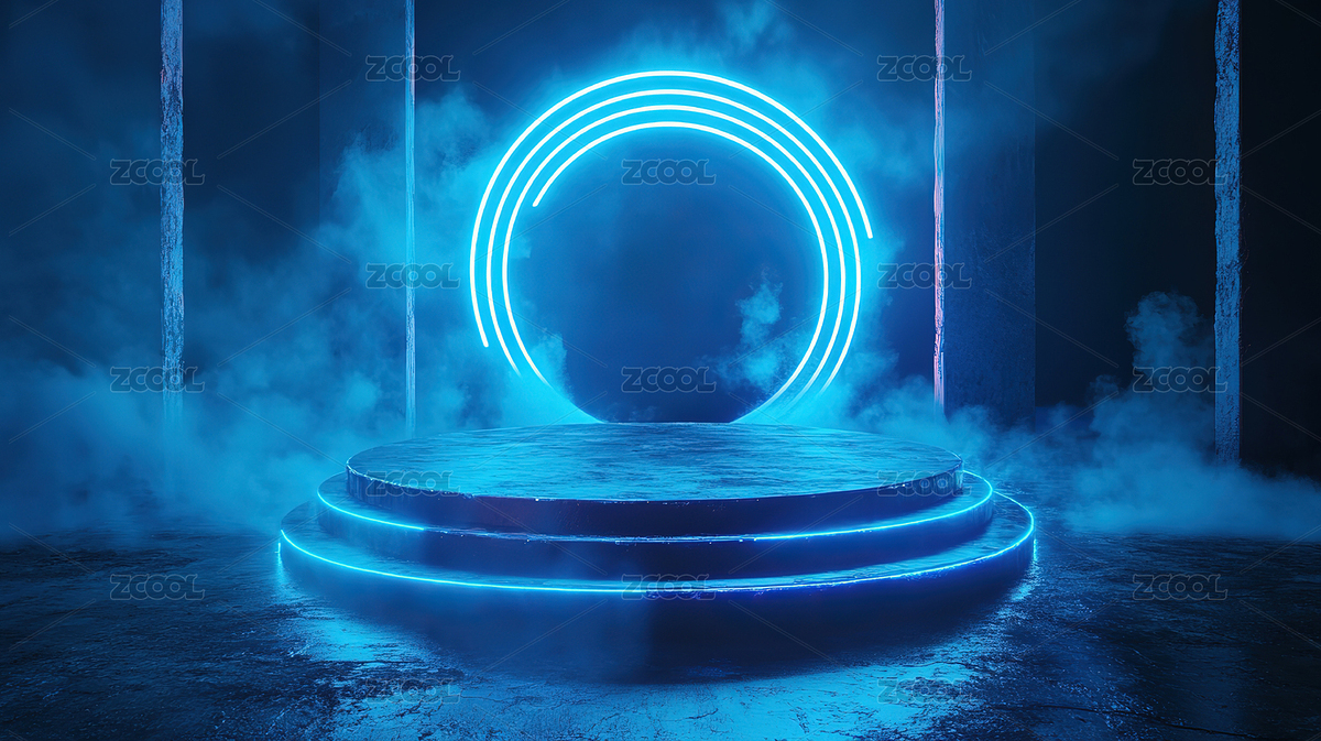 抽象霓虹灯发光几何线条3D渲染商务背景