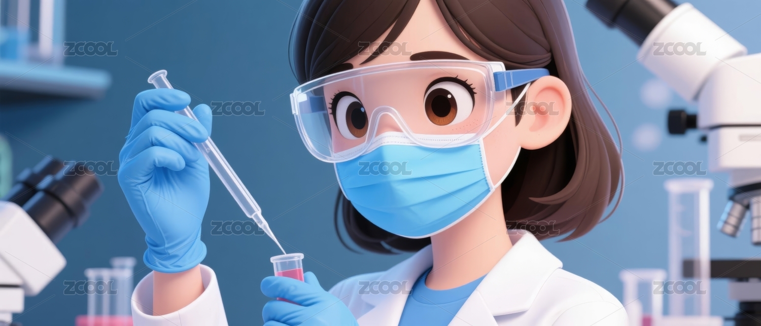 卡通女科学家准备注射器做实验