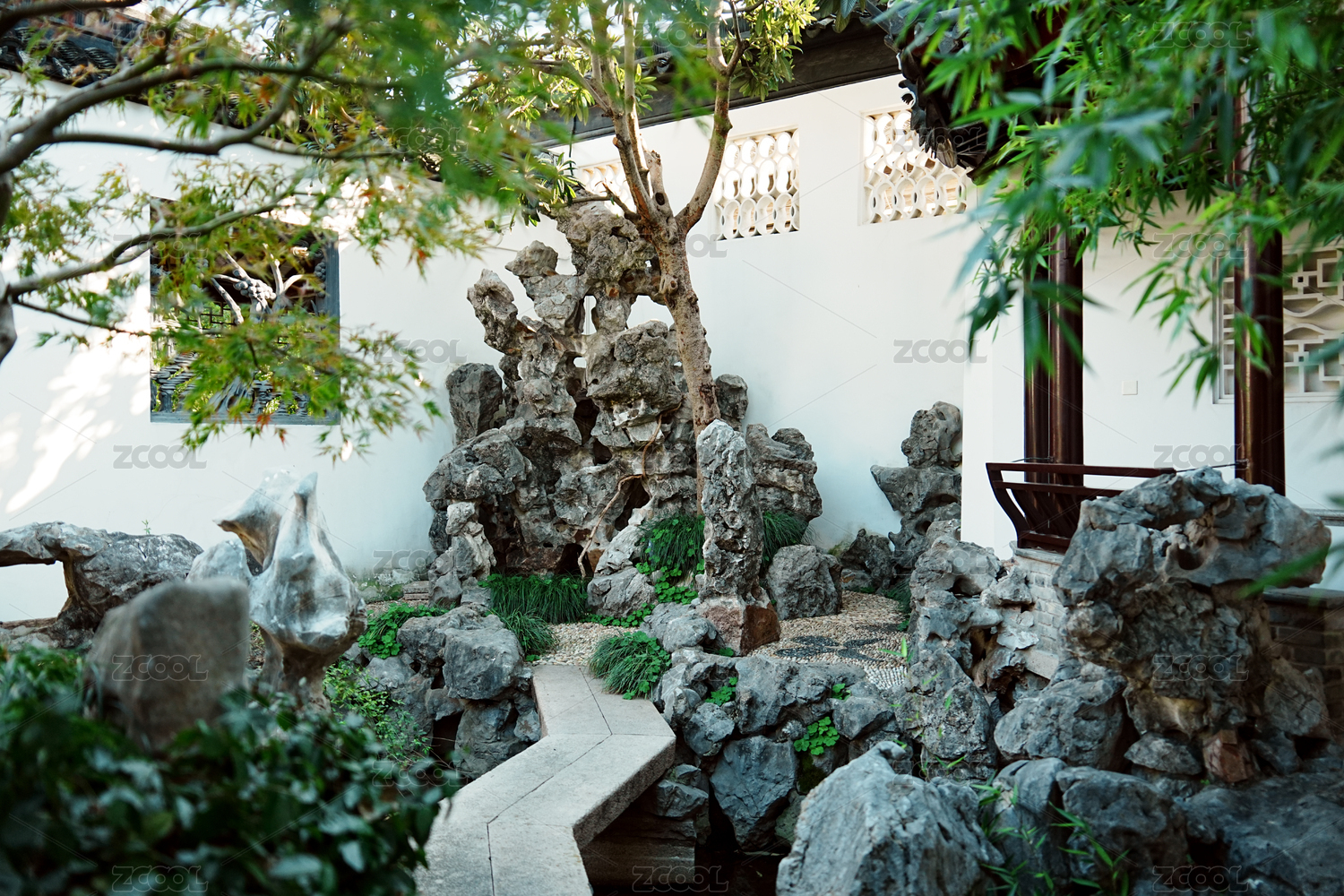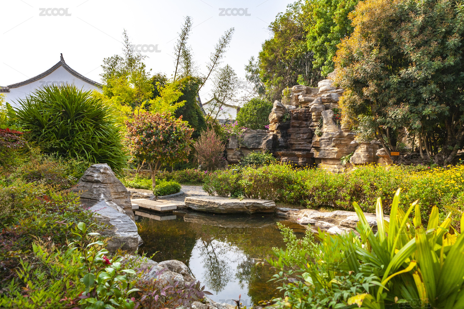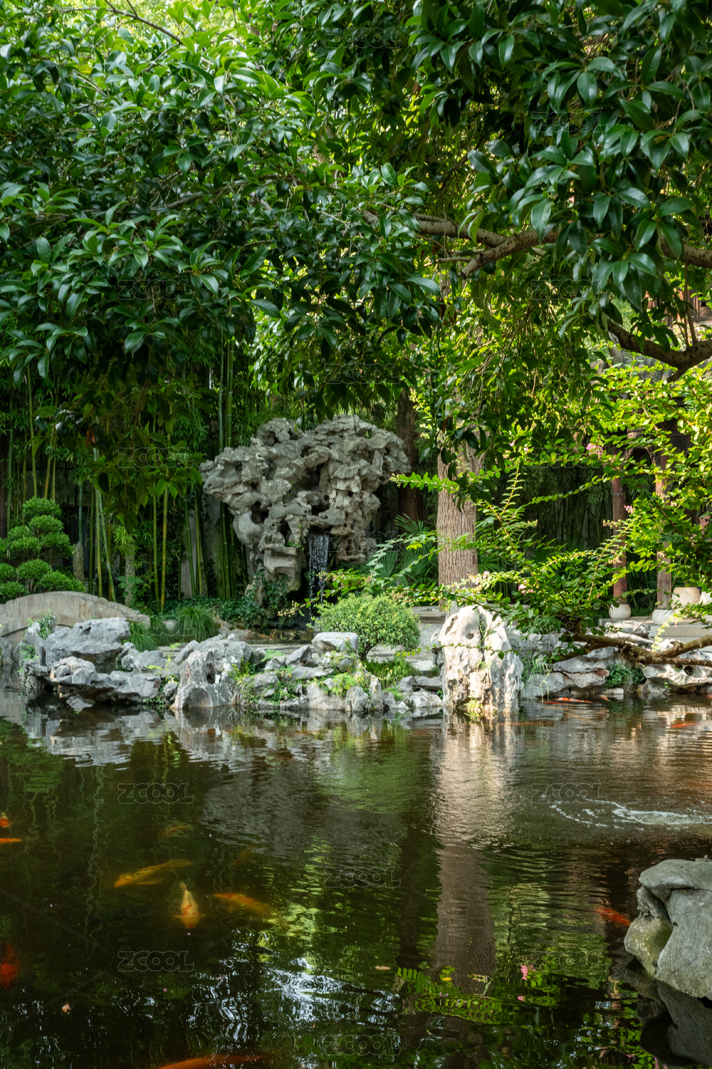 佛山顺德清晖园中式传统岭南园林假山瀑布