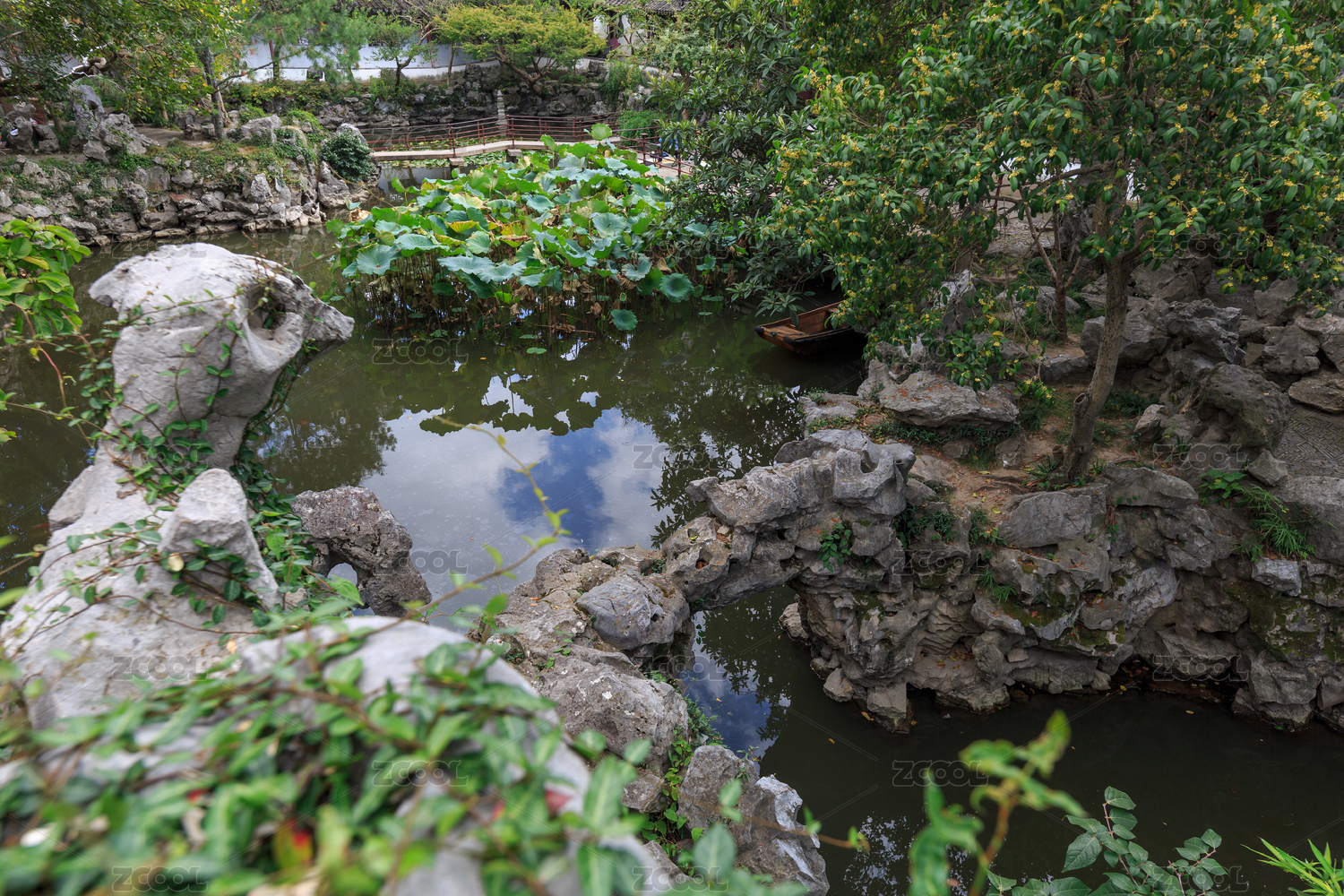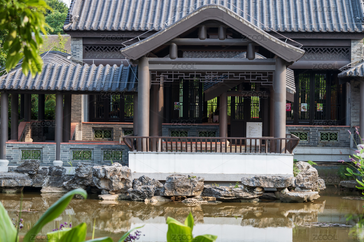 广东广州文化馆传统亭台楼阁建筑睡莲倒影