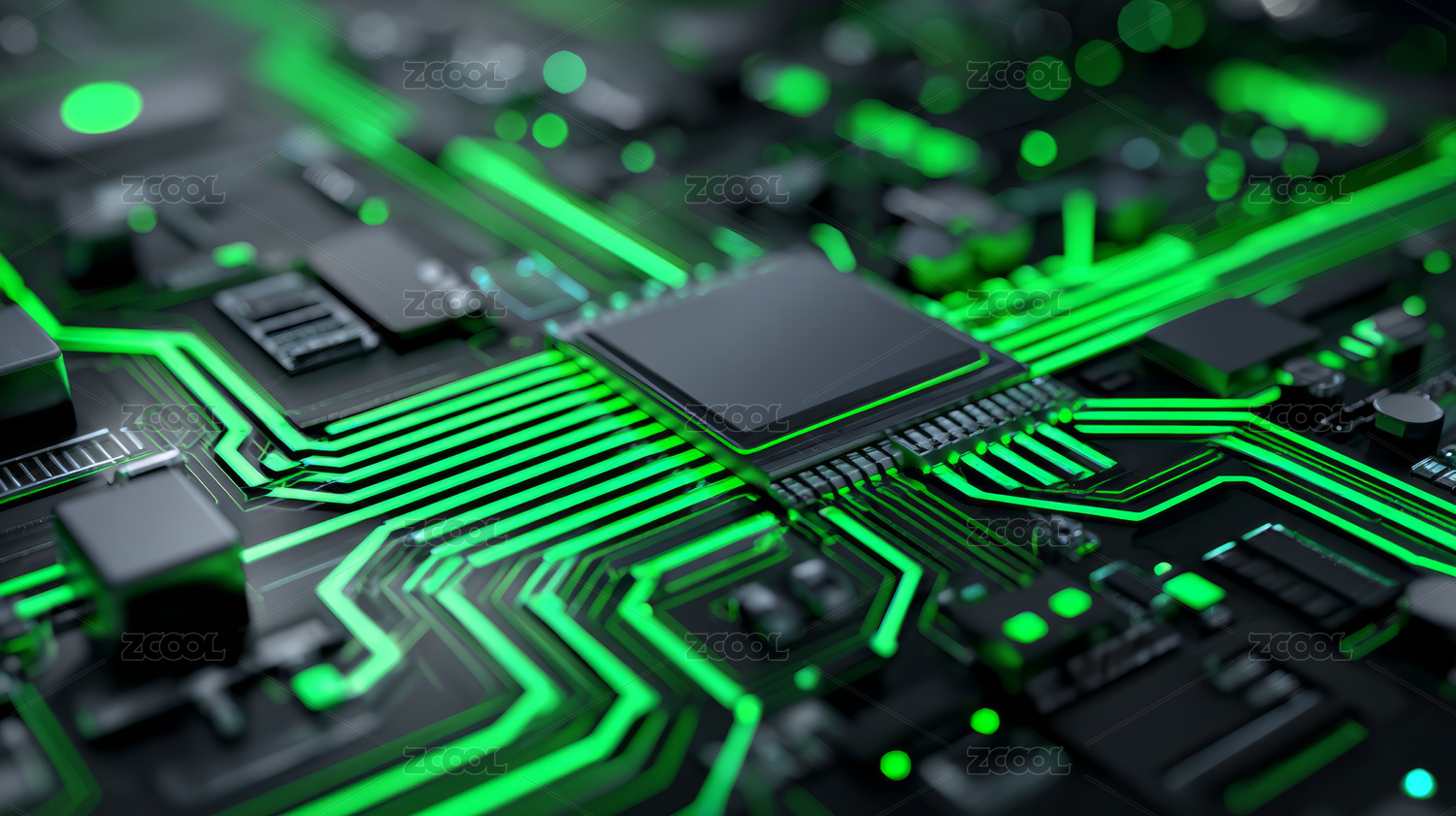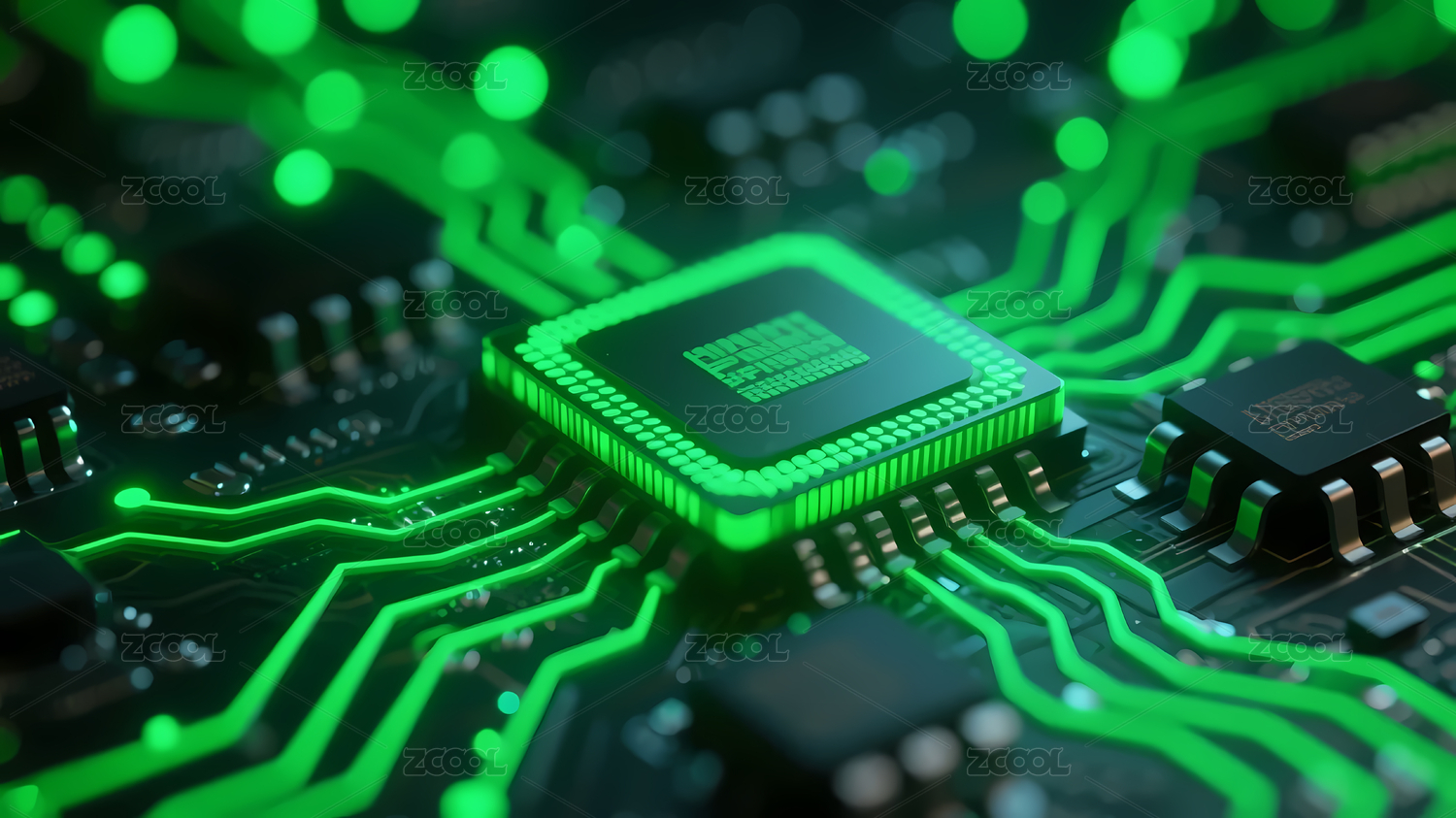 绿色处理器电路深色背景