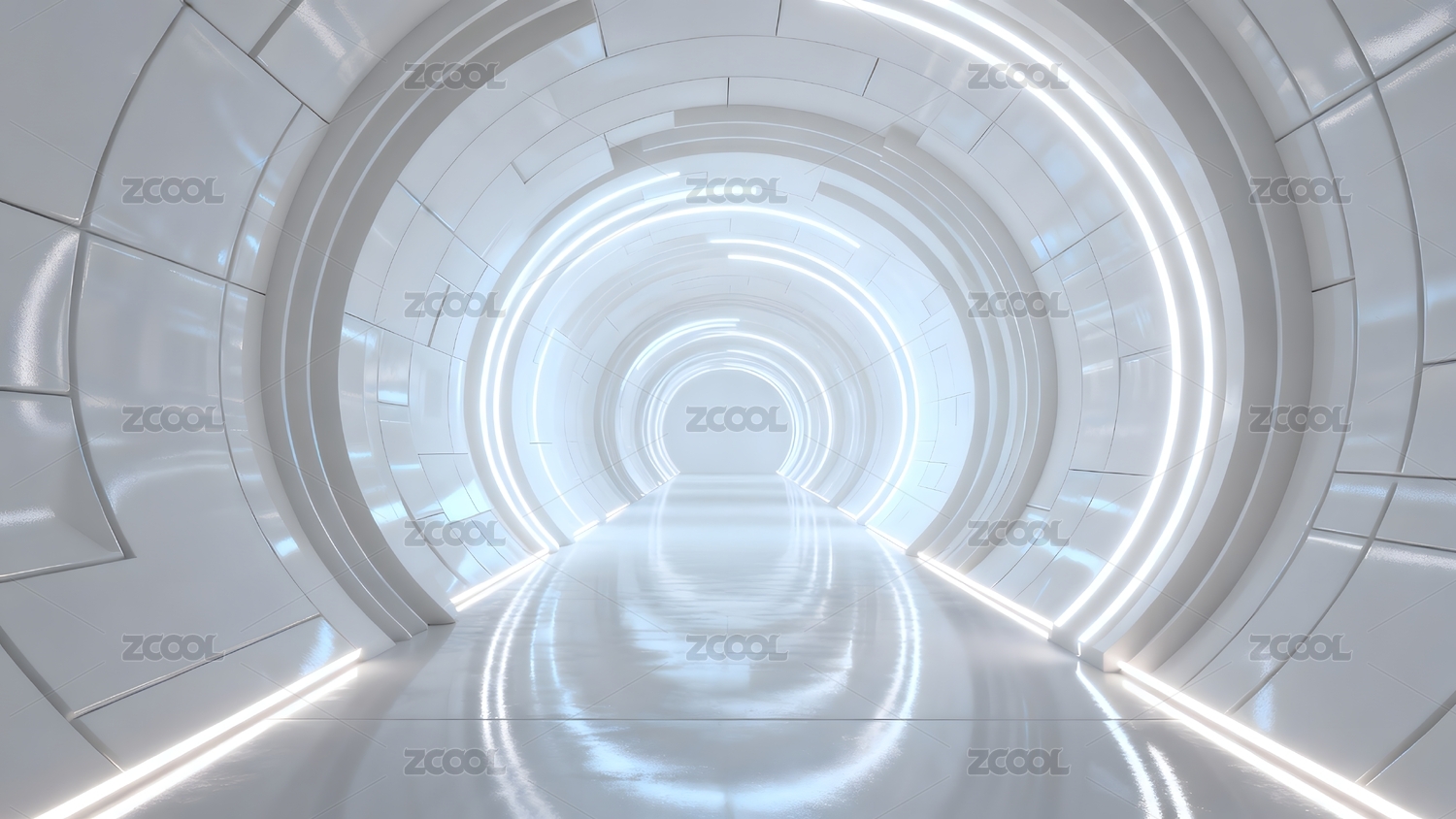 未来感白色隧道光影交错