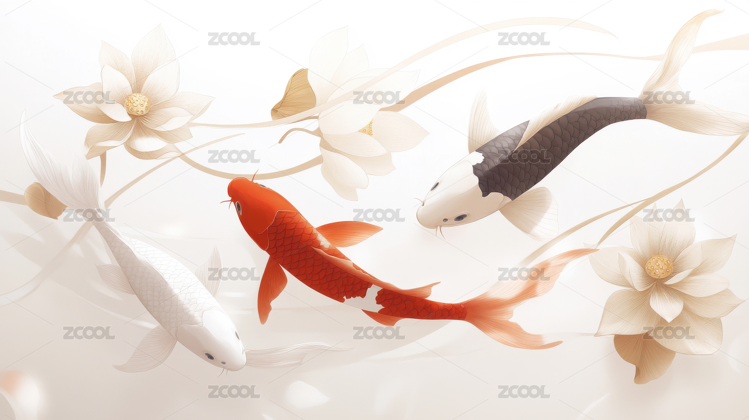 美丽,红色,艺术,浪漫,白色,锦鲤,鱼,自然,游泳,动物