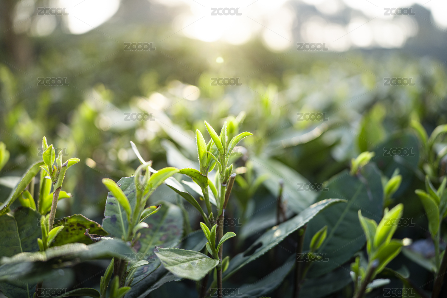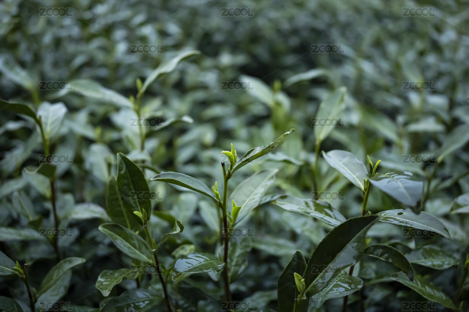 阴雨天气下福建龙岩高山茶园里茶树嫩叶特写