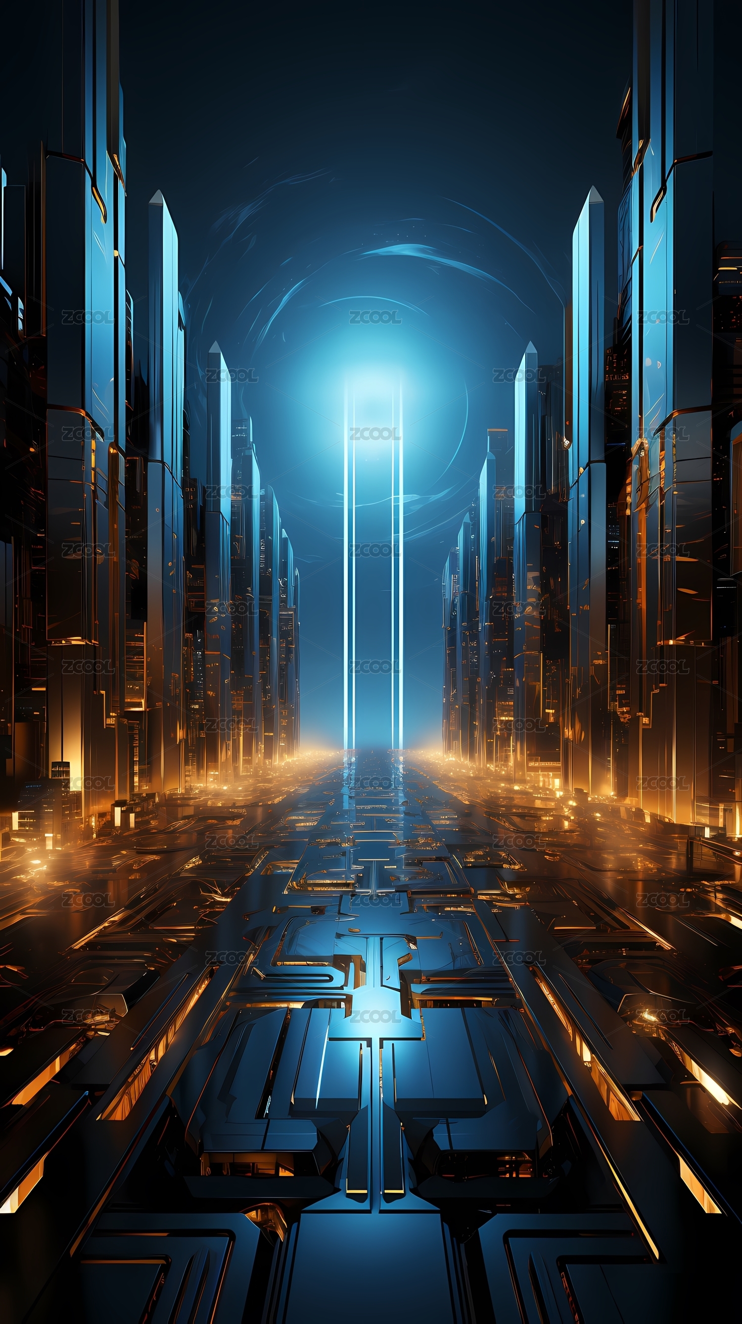 蓝色发光线条粒子组成科技感元素背景3D霓