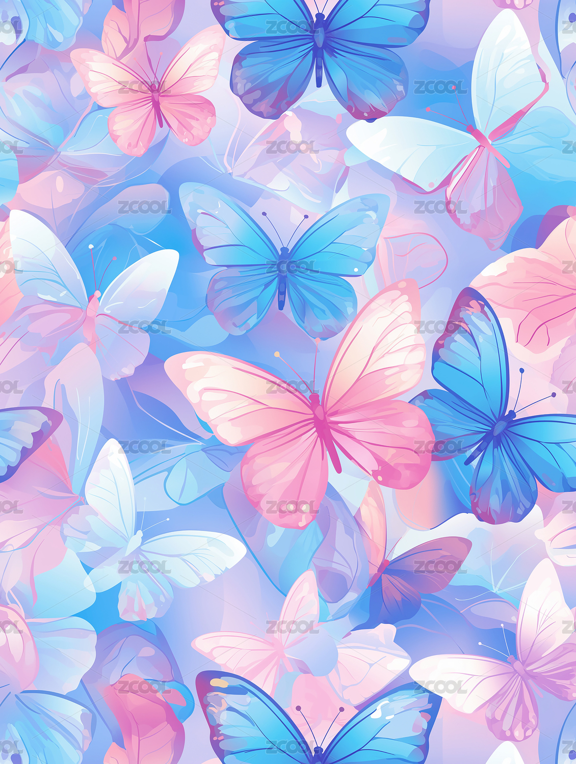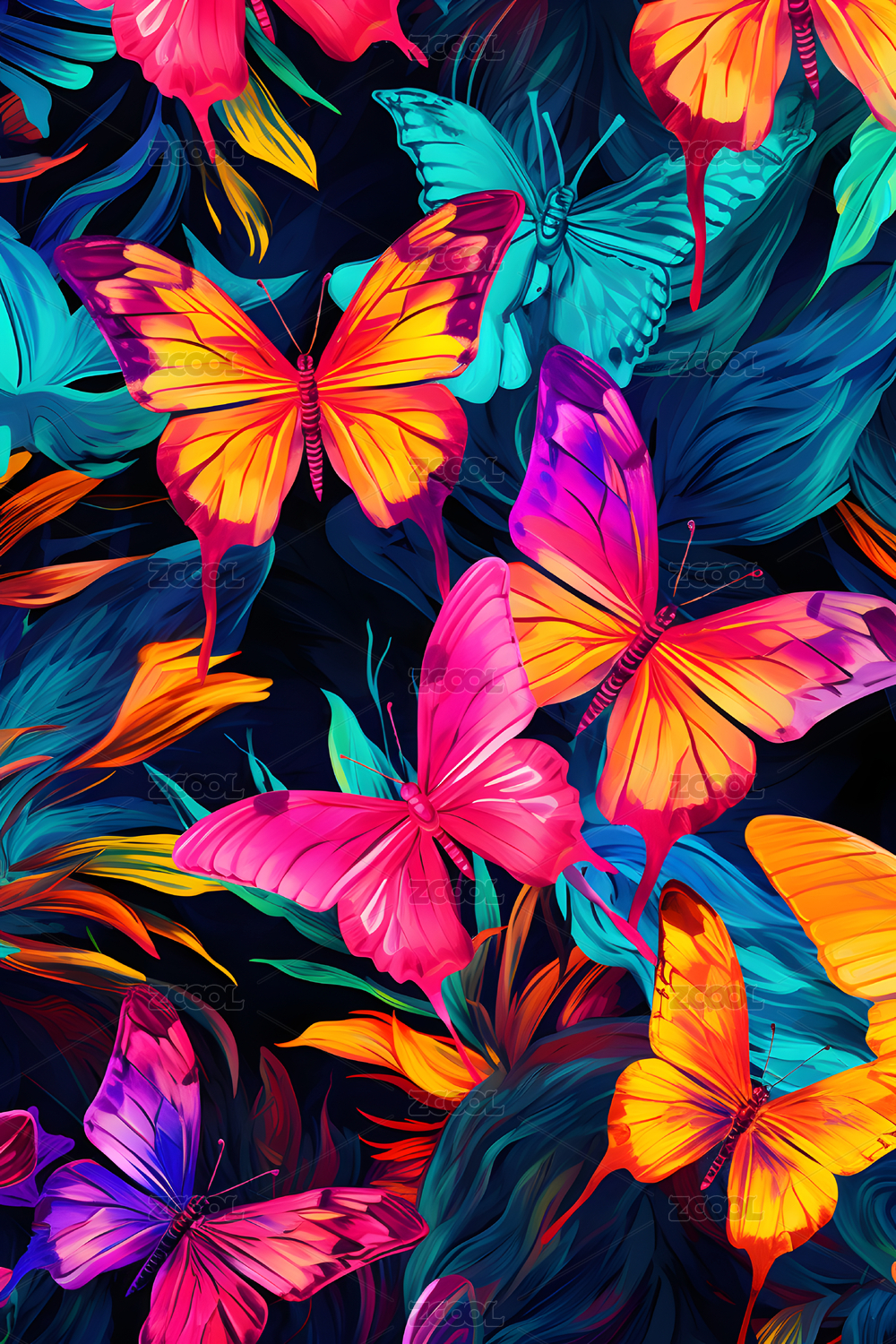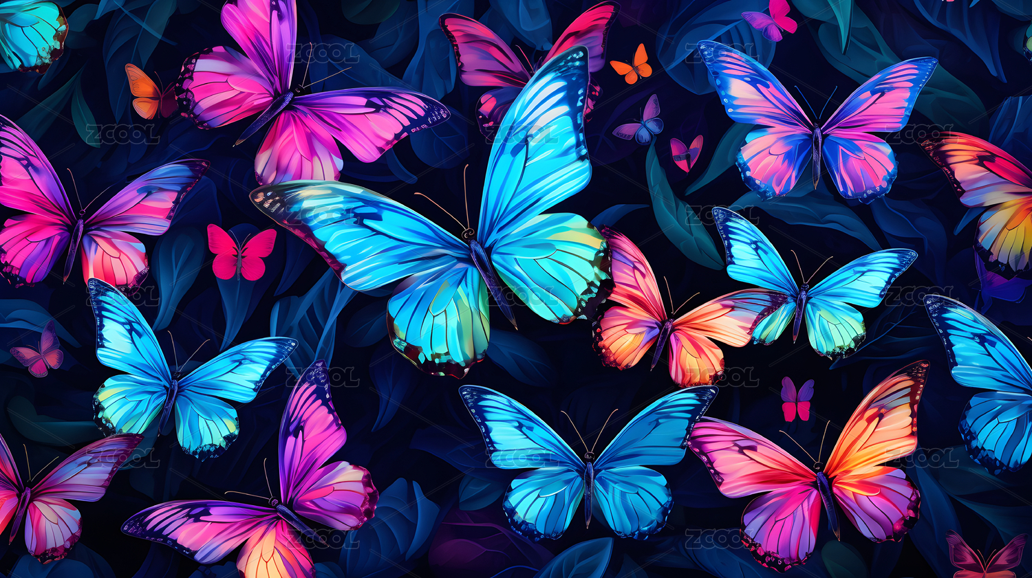 梦幻飞舞煽动翅膀的彩色蝴蝶印花图案