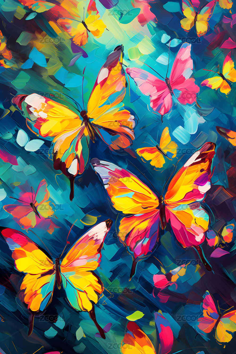蝴蝶艺术感质感厚涂笔触抽象装饰画背景