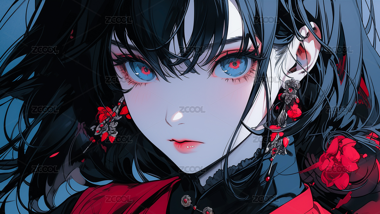 人像,女性,女孩,柔美,温柔,二次元,少女,日式,服饰,黑暗