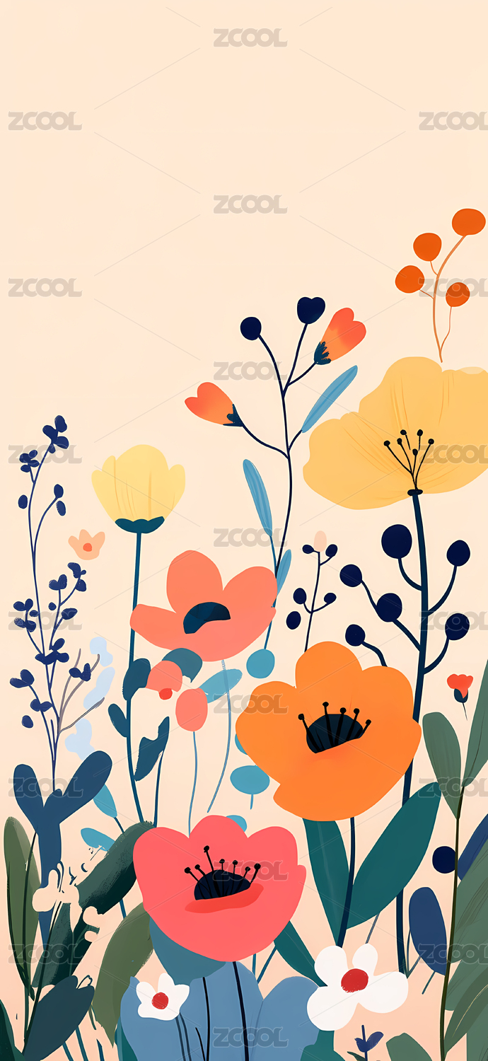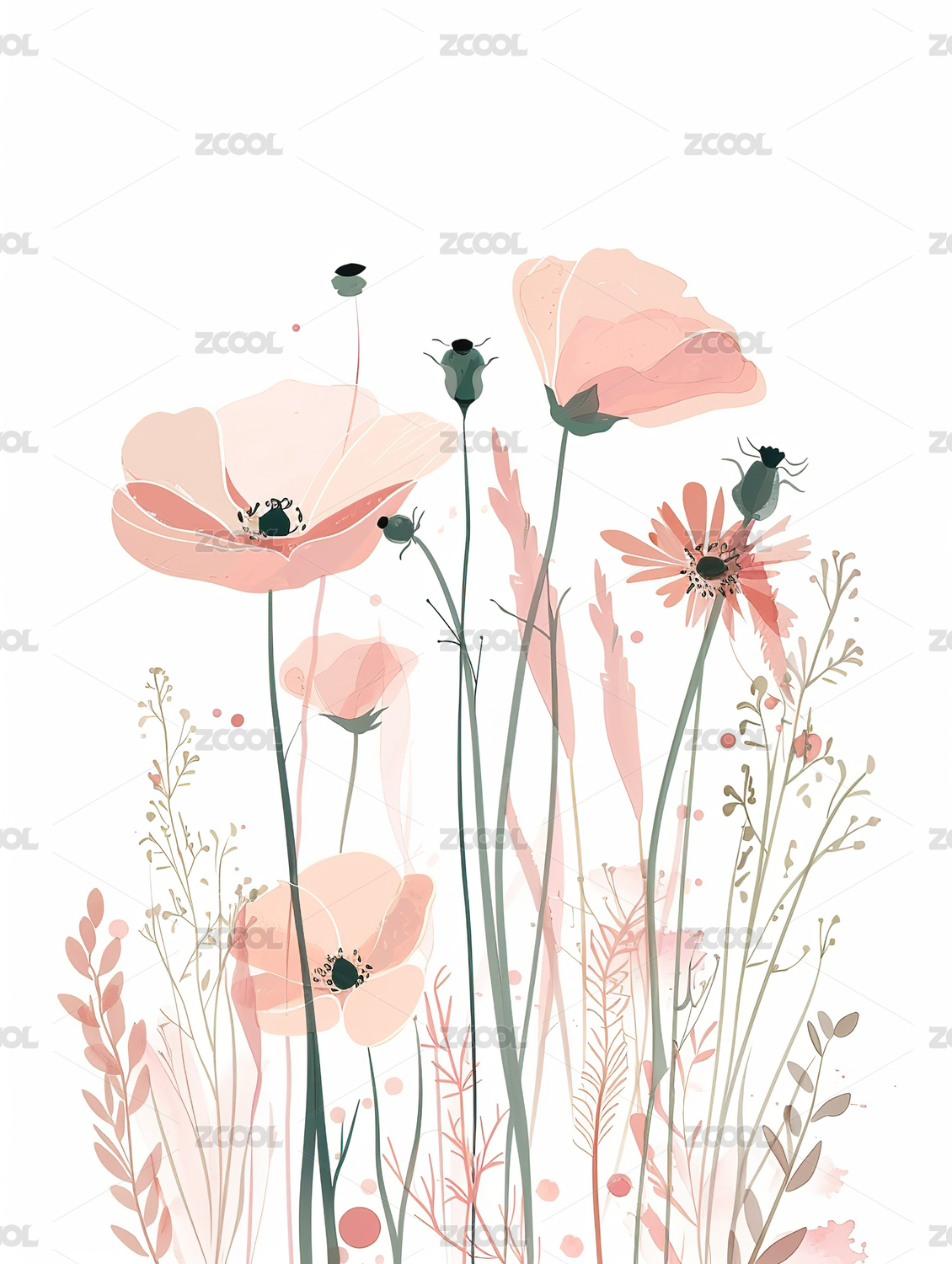 数码水彩花朵围绕边框植物抽象图形海报背景