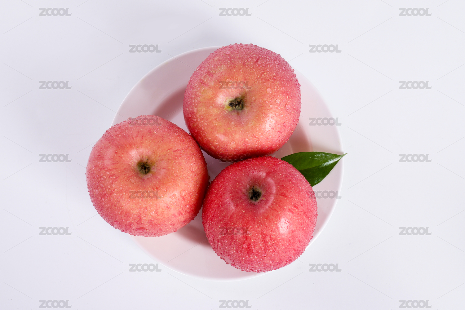 白色背景上摆放着的新鲜的红富士苹果