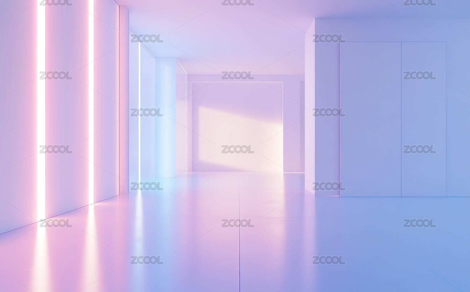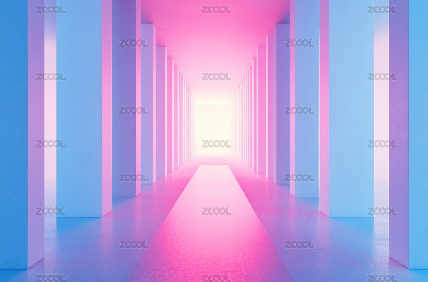 粉色现代几何建筑空间平台3D渲染抽象背景