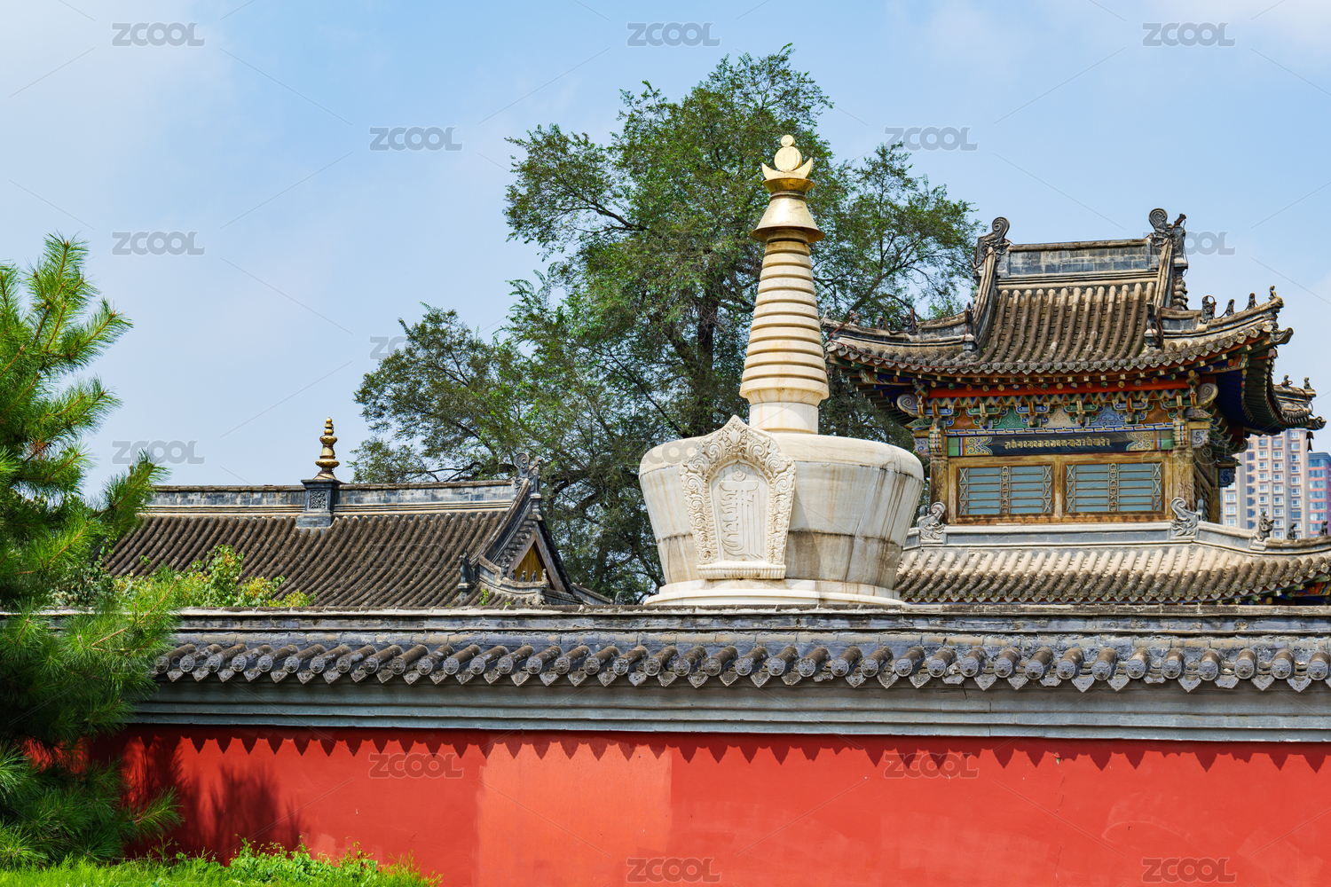 北京颐和园万寿山四大部洲藏传寺庙白塔建筑