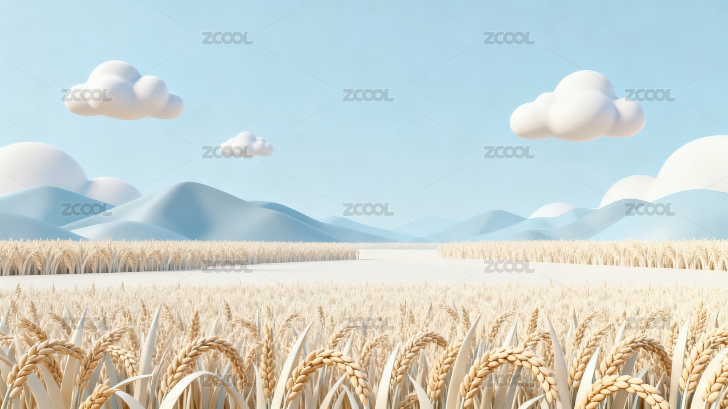 秋天麦田农庄节气风景3D渲染