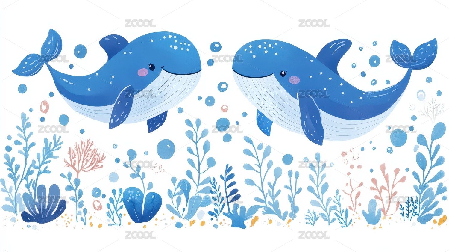 可爱双鲸海底图