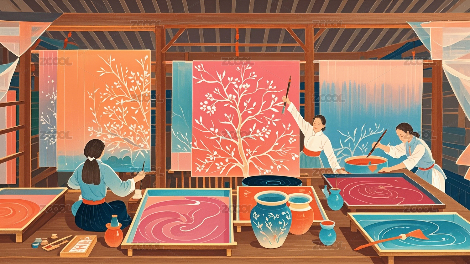 传统文化手工艺丝绸染色制作插图