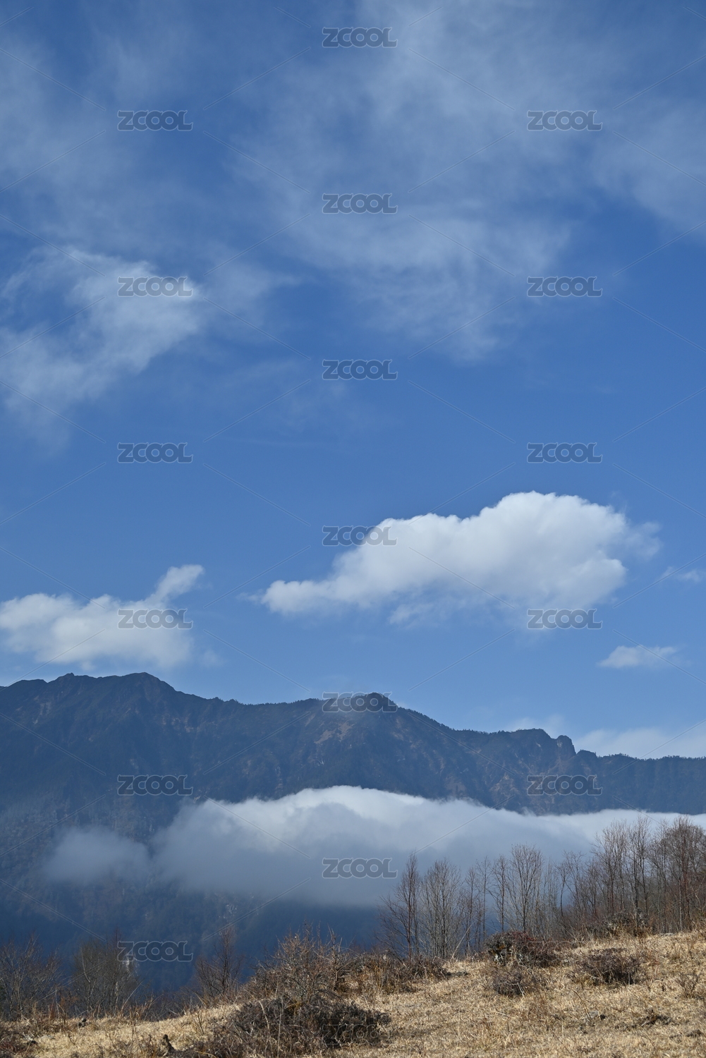 川西汶川云中牧场的群山在天空中的全景