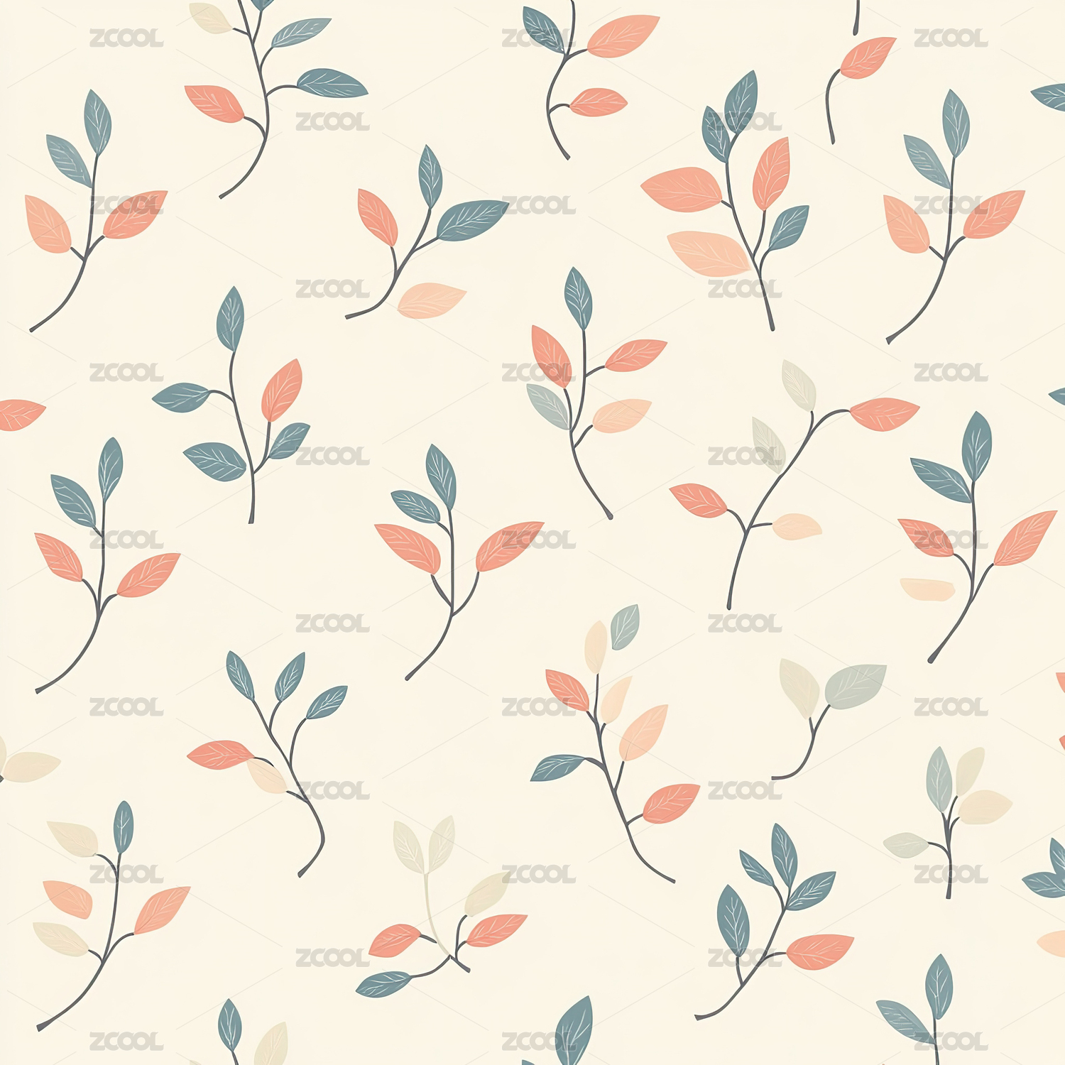 手绘水彩小清新植物无缝背景