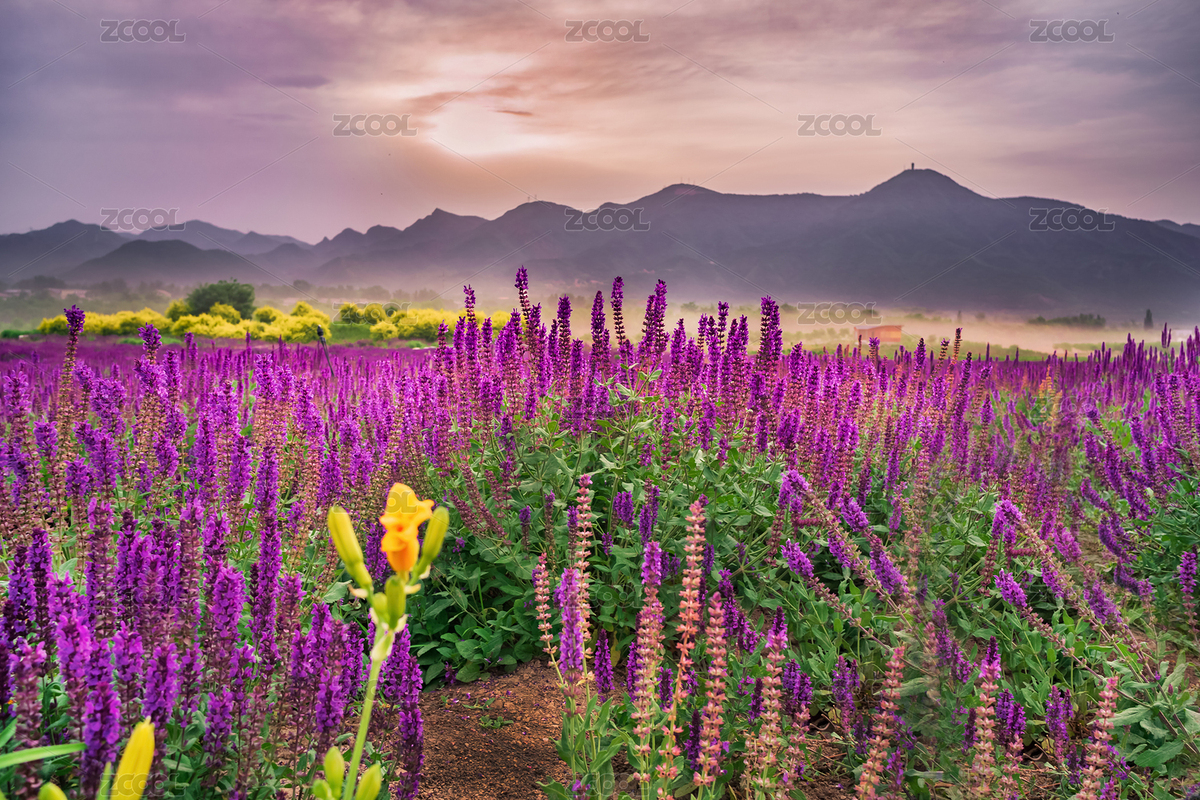 晚霞薰衣草花海