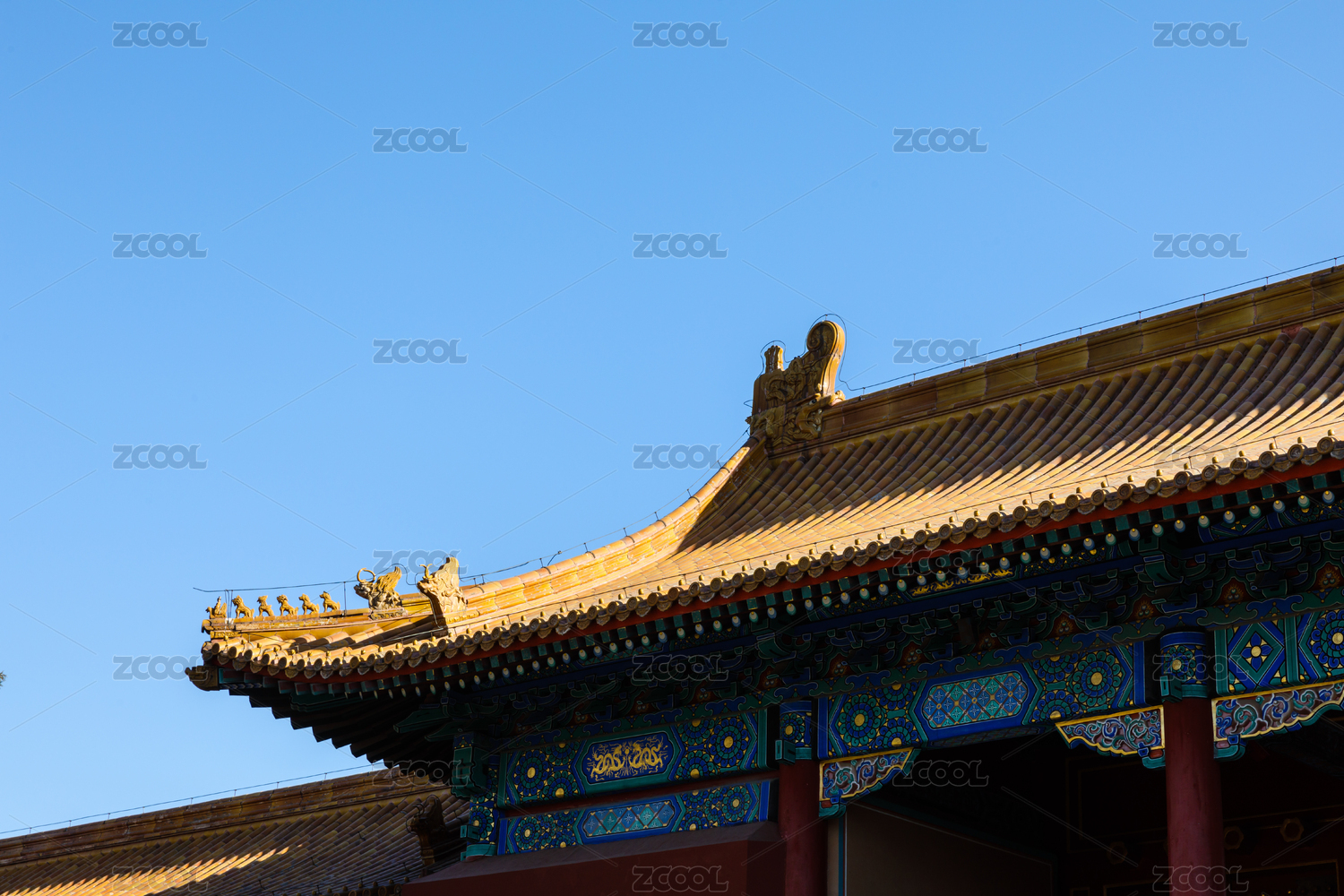 中国北京故宫东方古代建筑屋檐上的脊兽