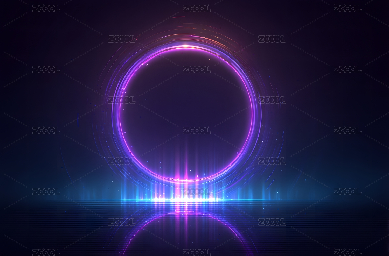 红蓝色霓虹灯环绕构成的发光通道隧道