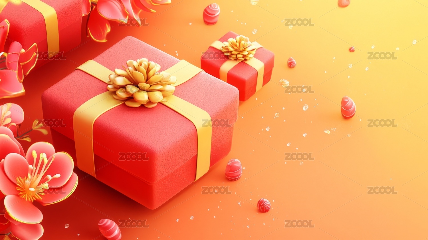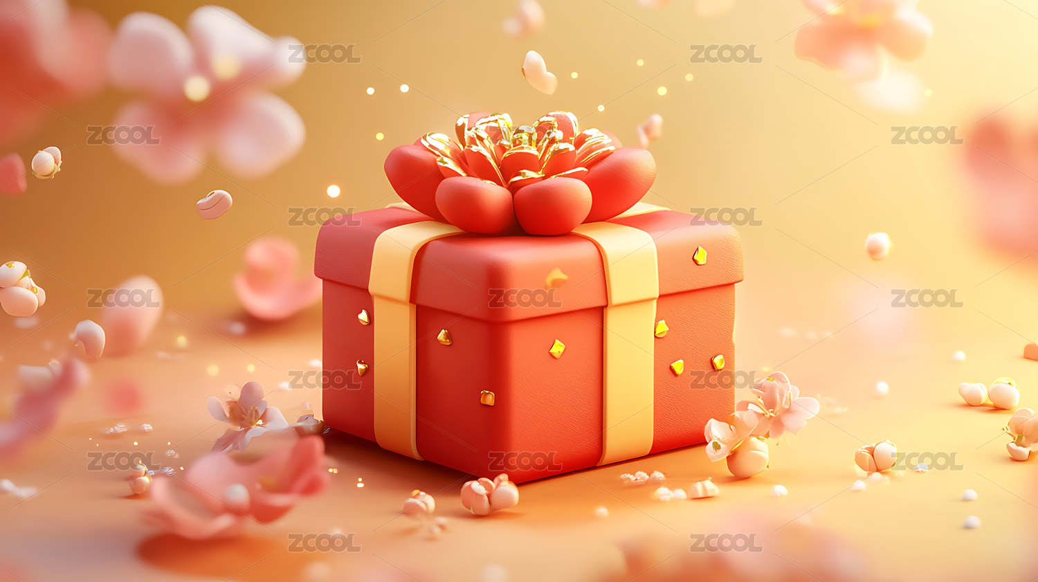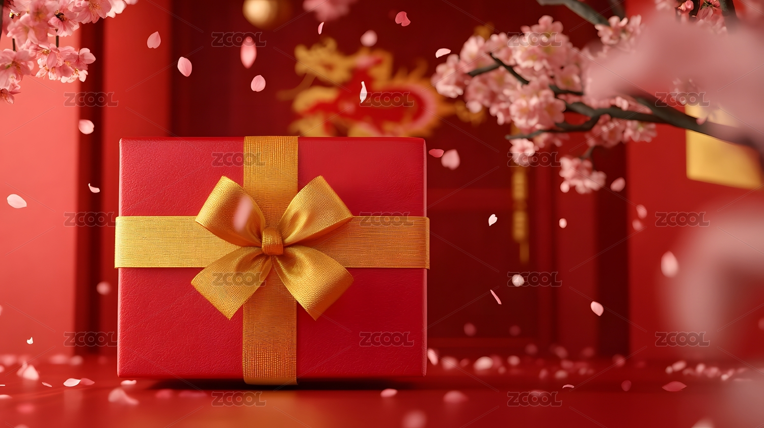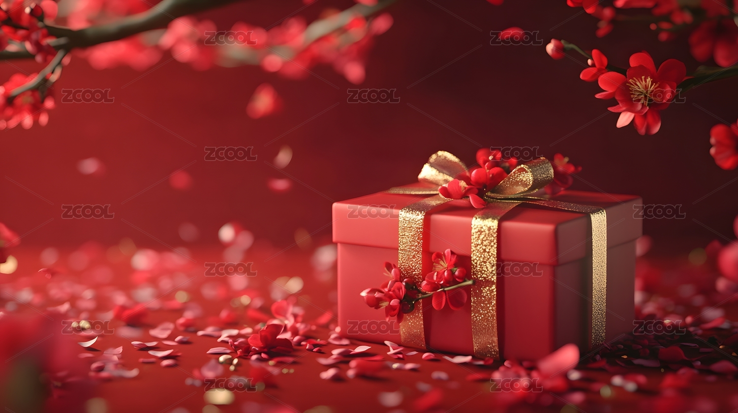 新年礼物盒落花缤纷