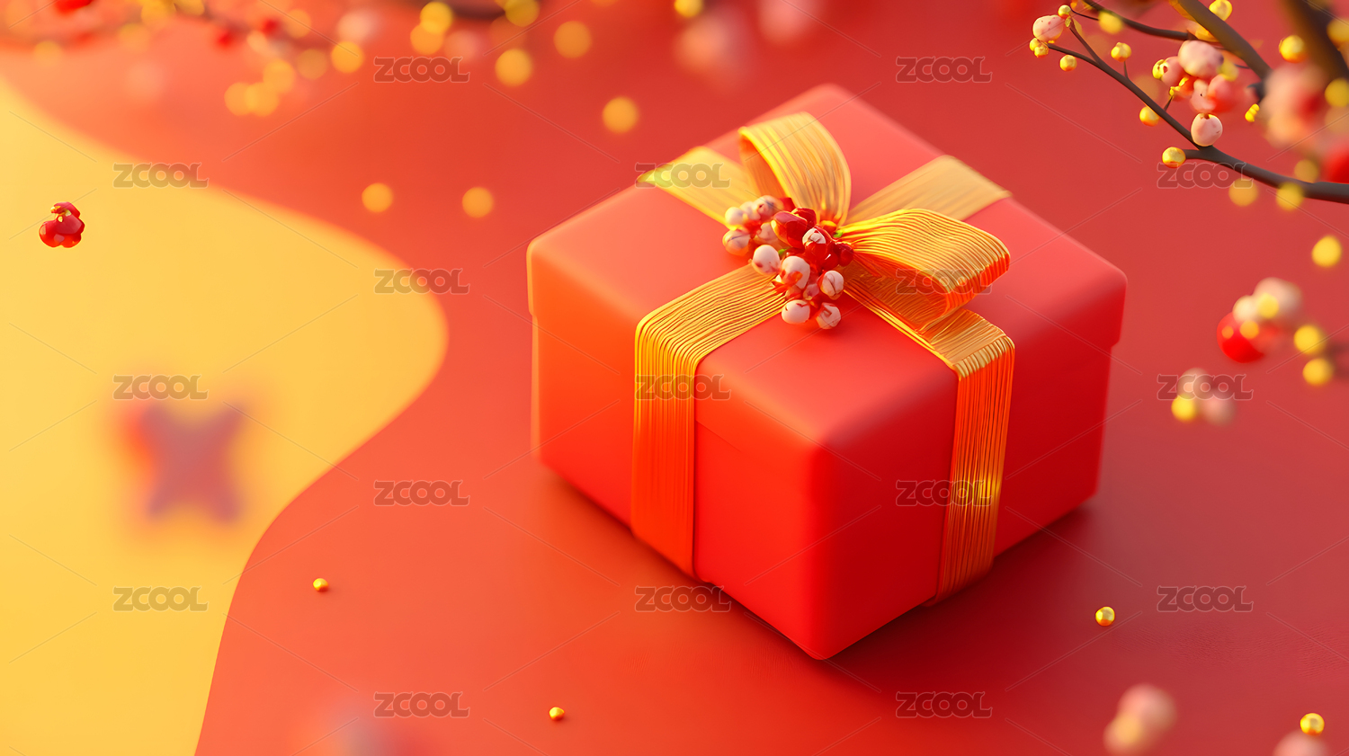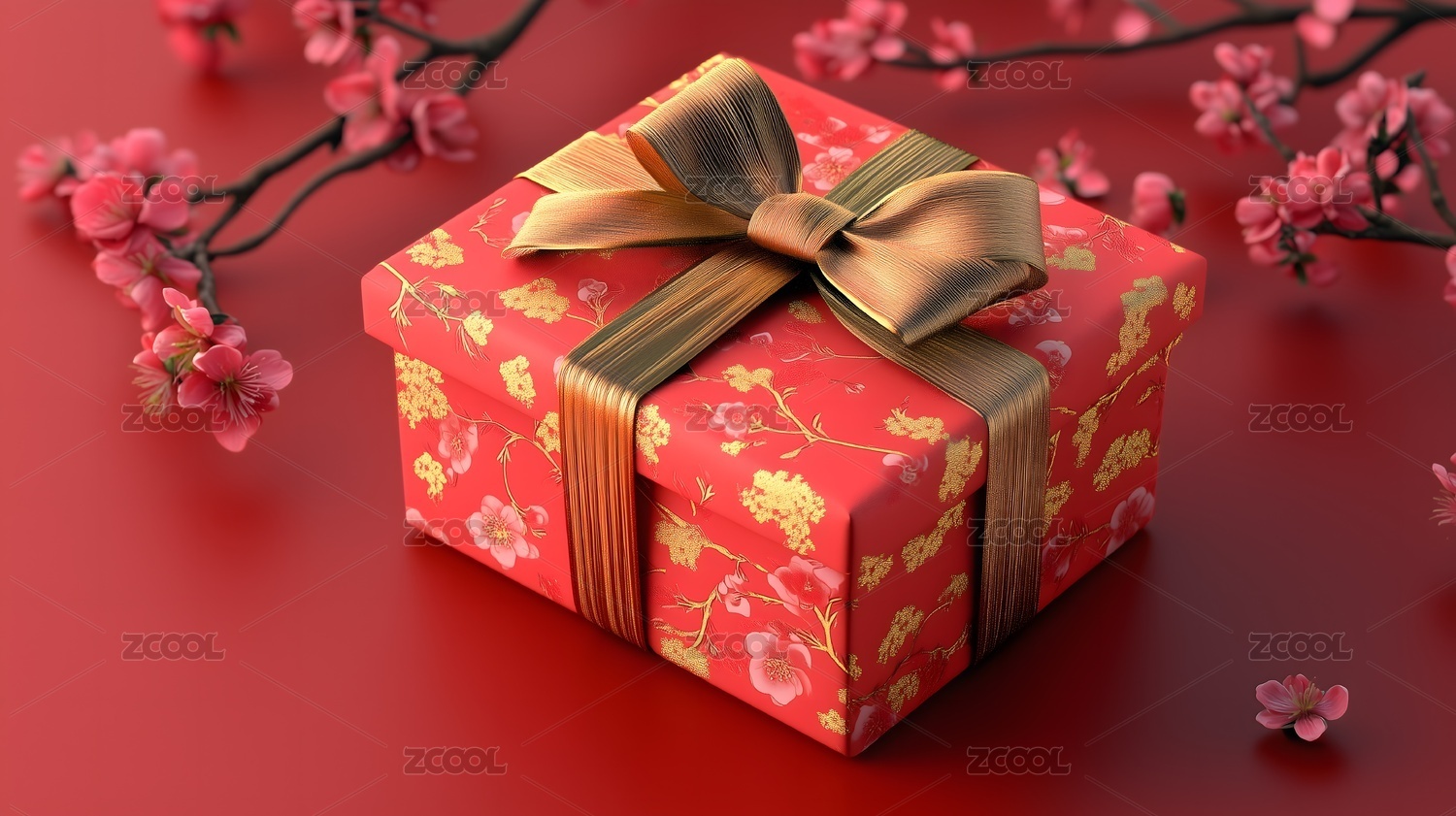 新年红礼盒与梅花枝