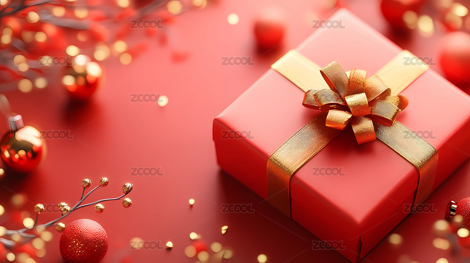 红色背景上的圣诞礼物特写镜头