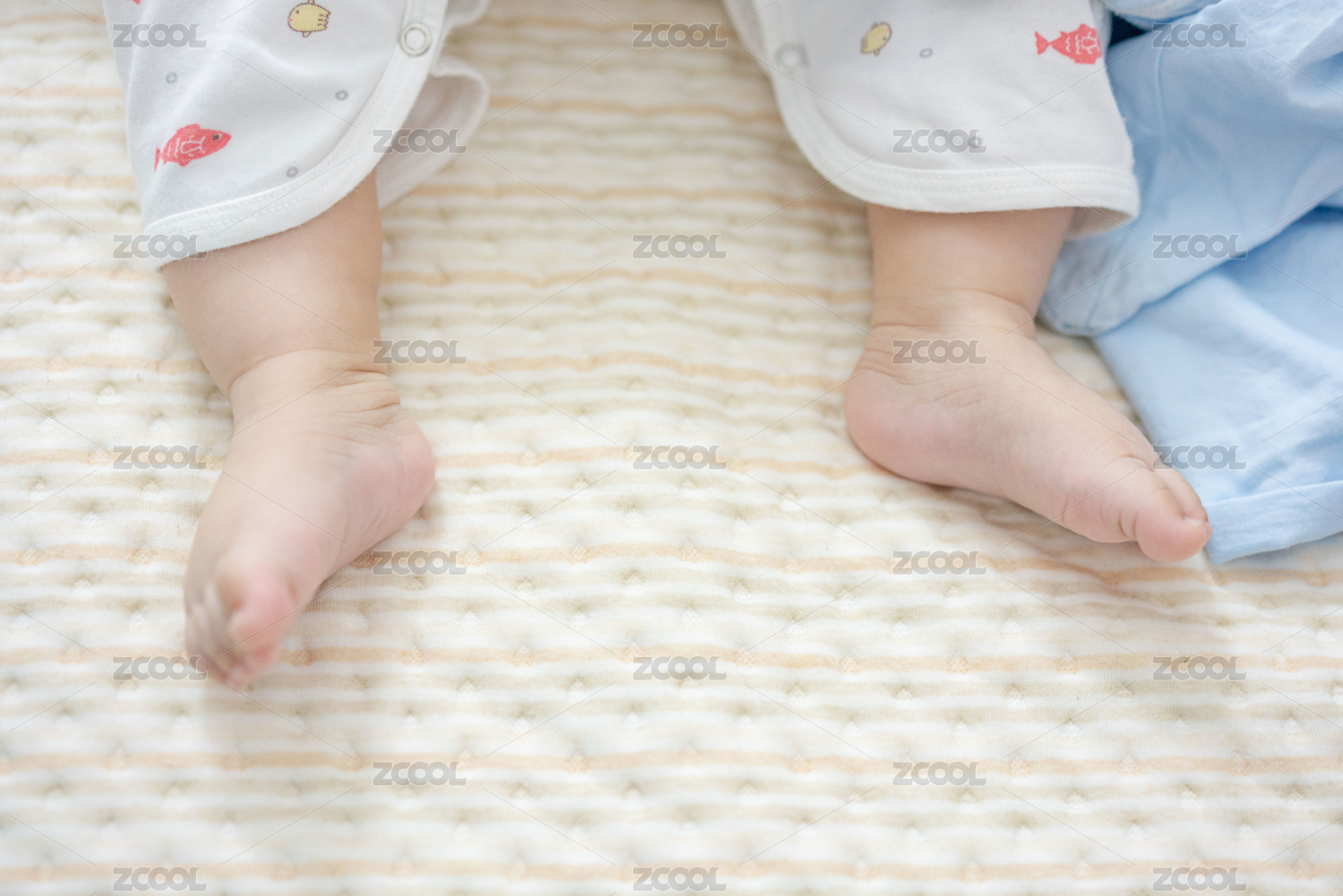一双亚洲婴儿没有穿鞋的脚丫特写