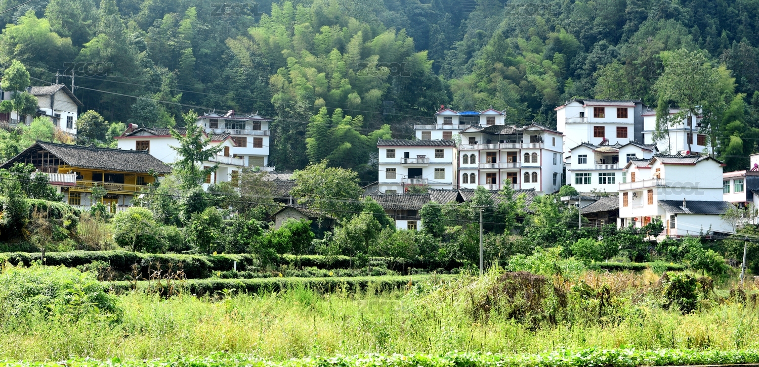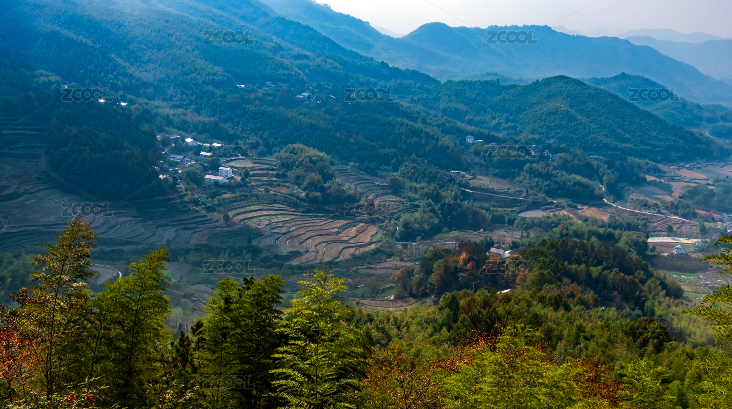 安徽省黄山市宏村镇卢村秋天的村庄田地房屋