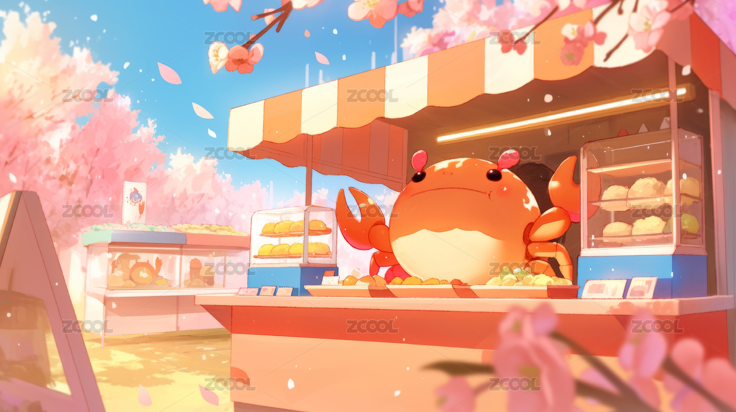 卡通,可爱,樱花,春天,粉色,治愈,清新,唯美,插画,绘画