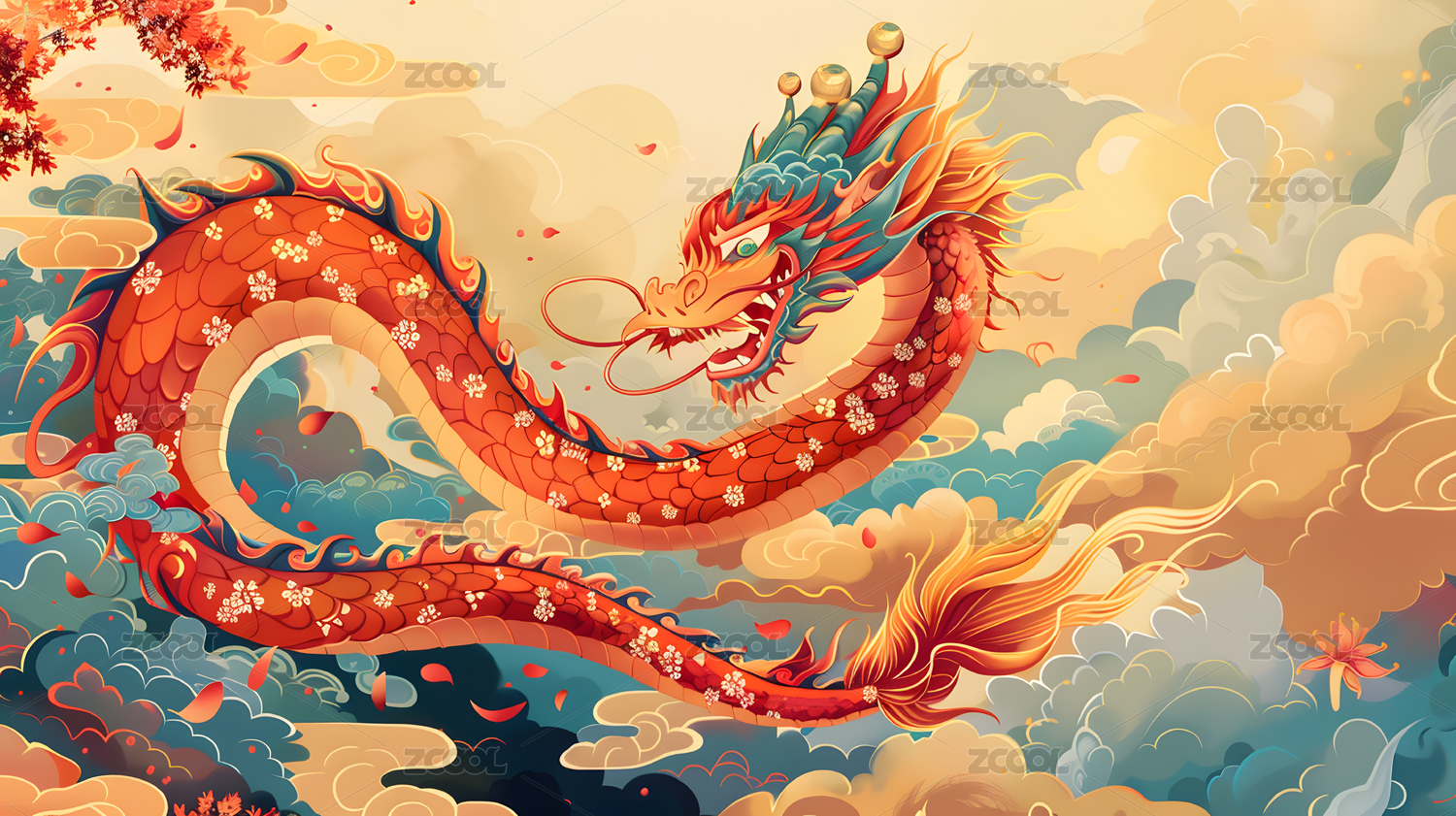 中国龙国潮风绘画场景