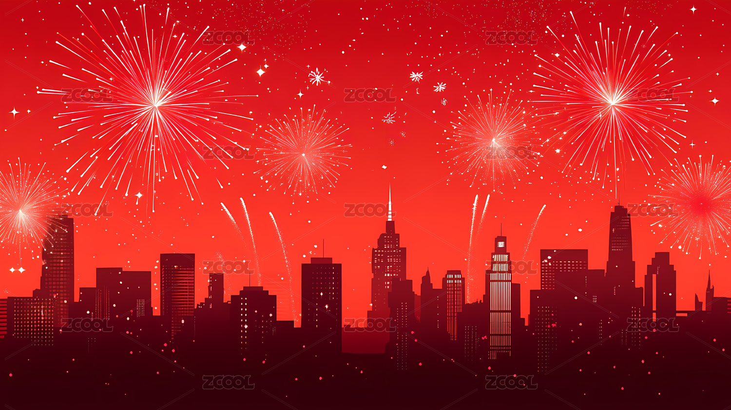 插画风格的城市烟花夜景