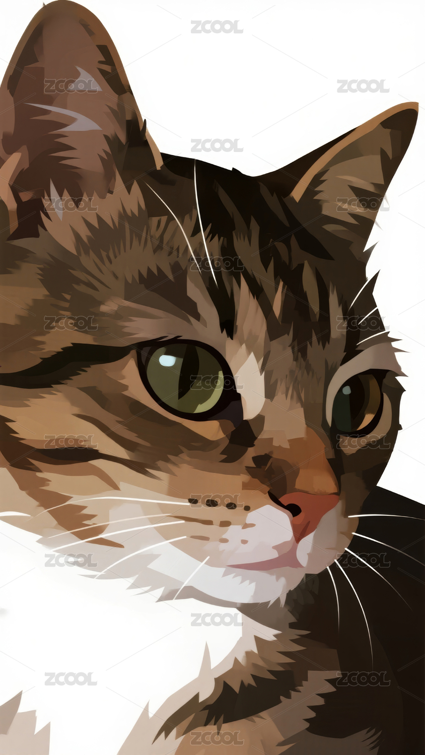 猫猫插画美国短毛猫棕色标准虎斑猫