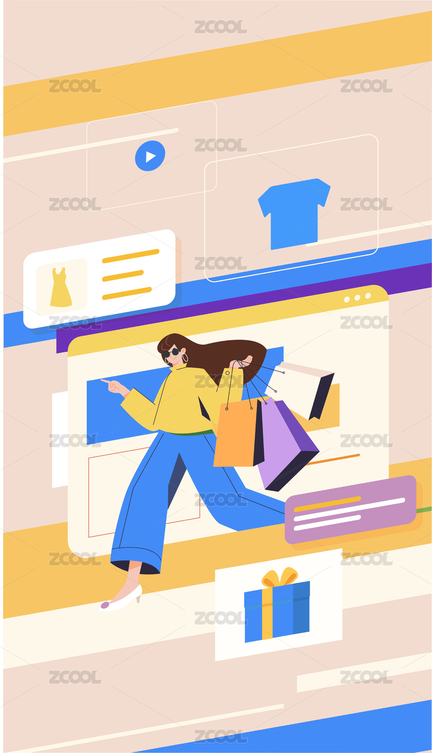 矢量,卡通,渐变,扁平,插画,插图,背景,元素,购物,互联网