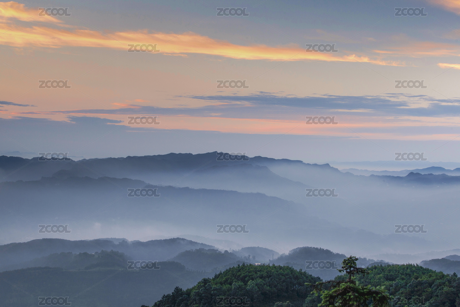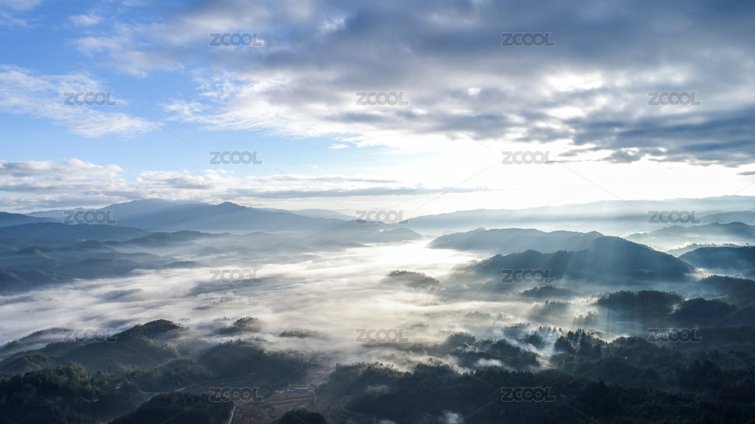 四川宜宾横江古镇清晨云雾缭绕的山脉