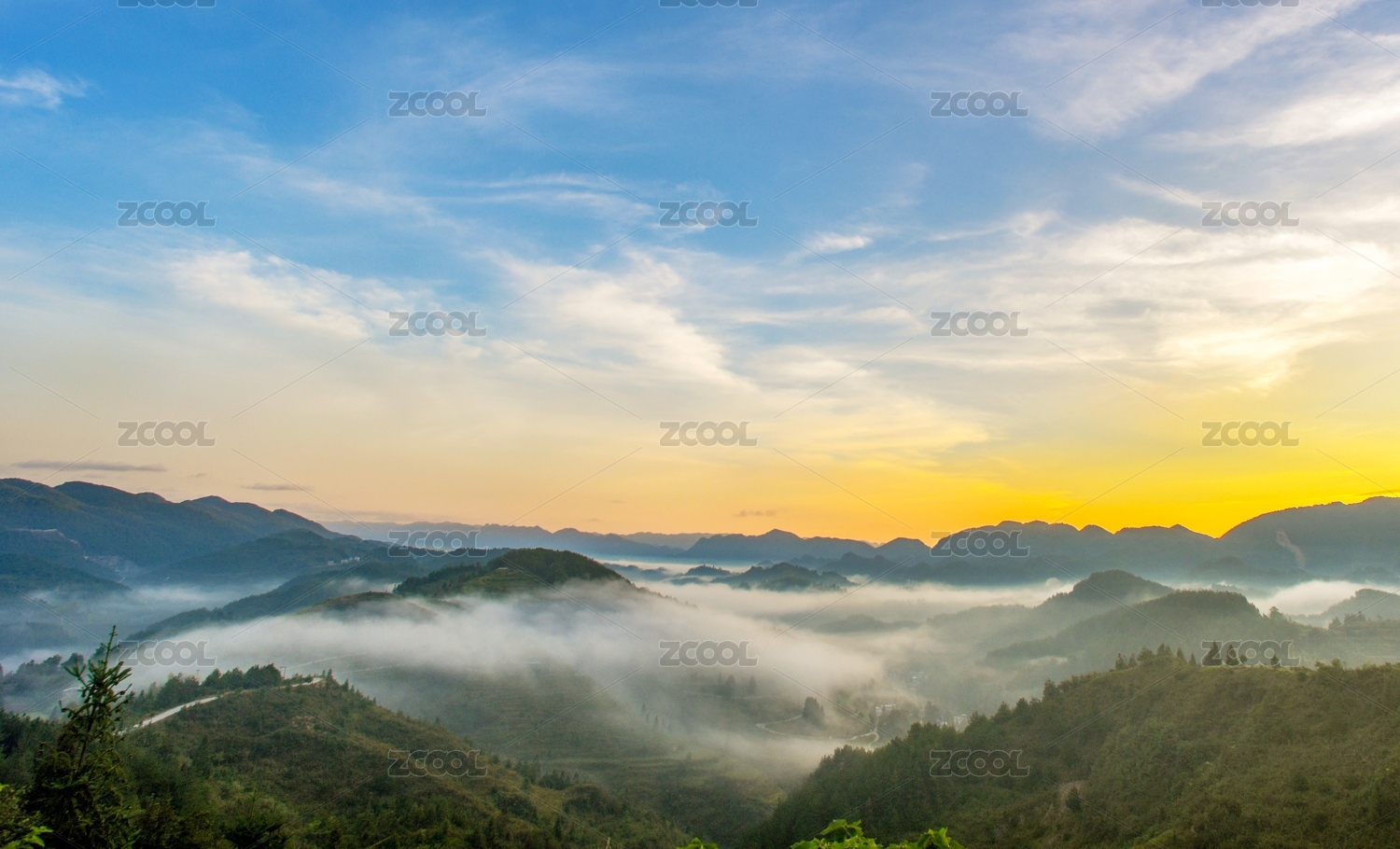 贵州省黔东南黎平县堂安梯田日出水墨云雾