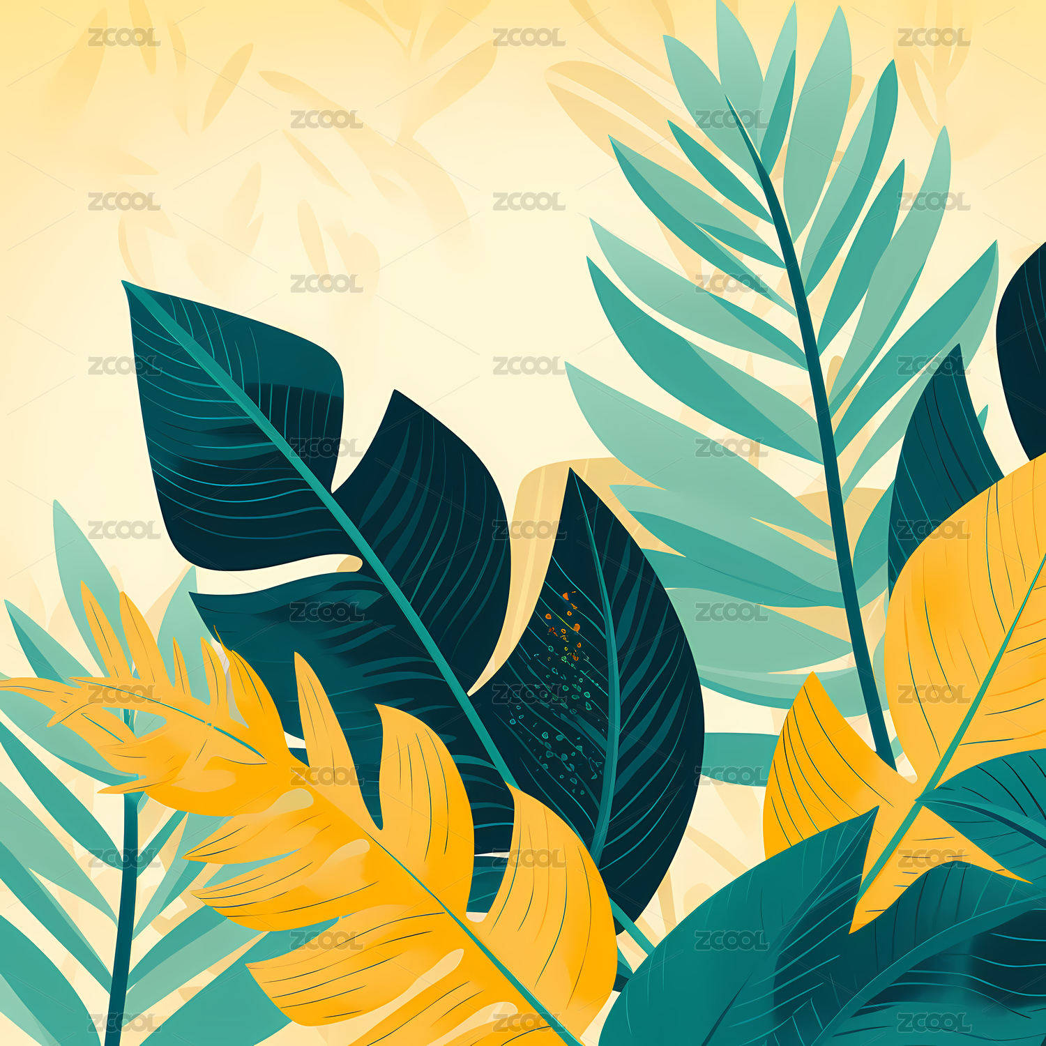 热带雨林,手绘,肌理插画,绿色,夏天,植物,雨林,森林,树,叶子