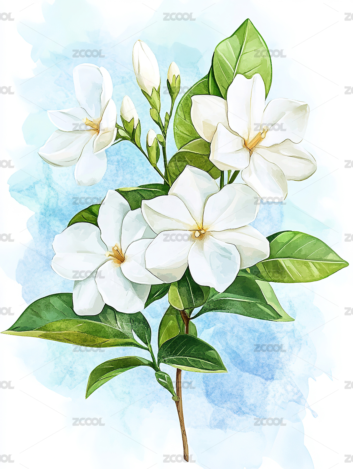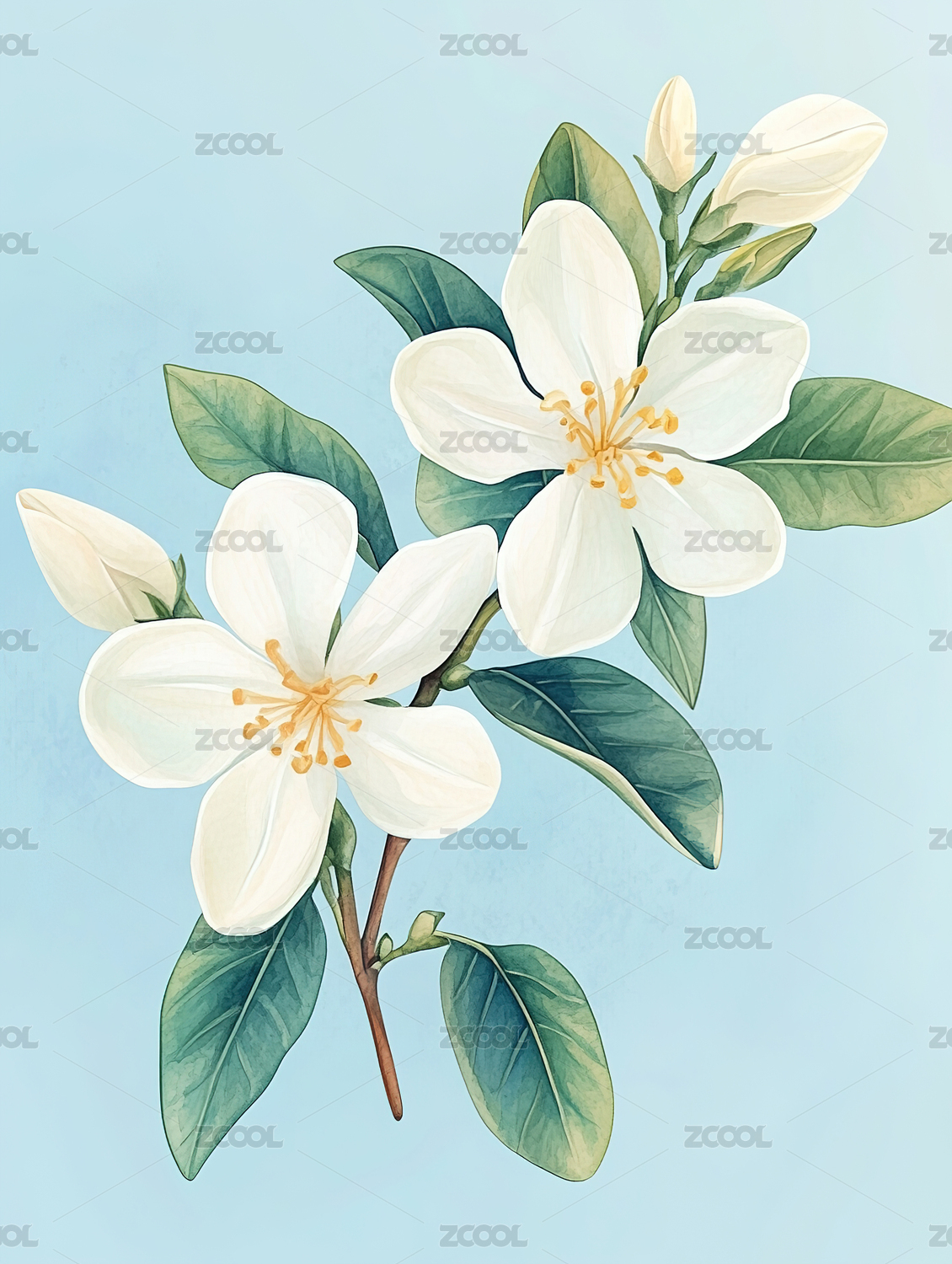 茉莉花水彩写实插画