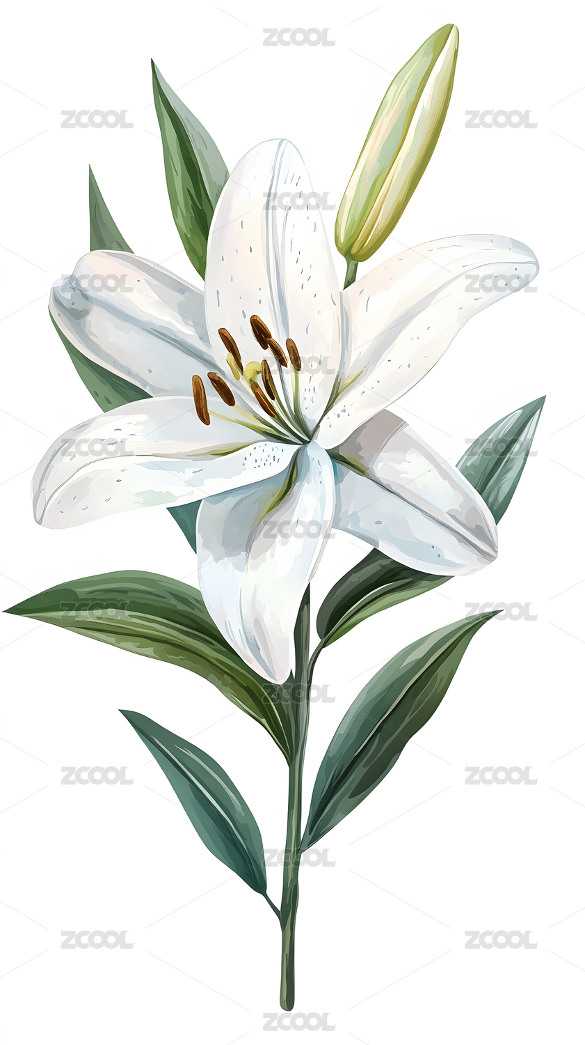百合花朵元素水彩插画