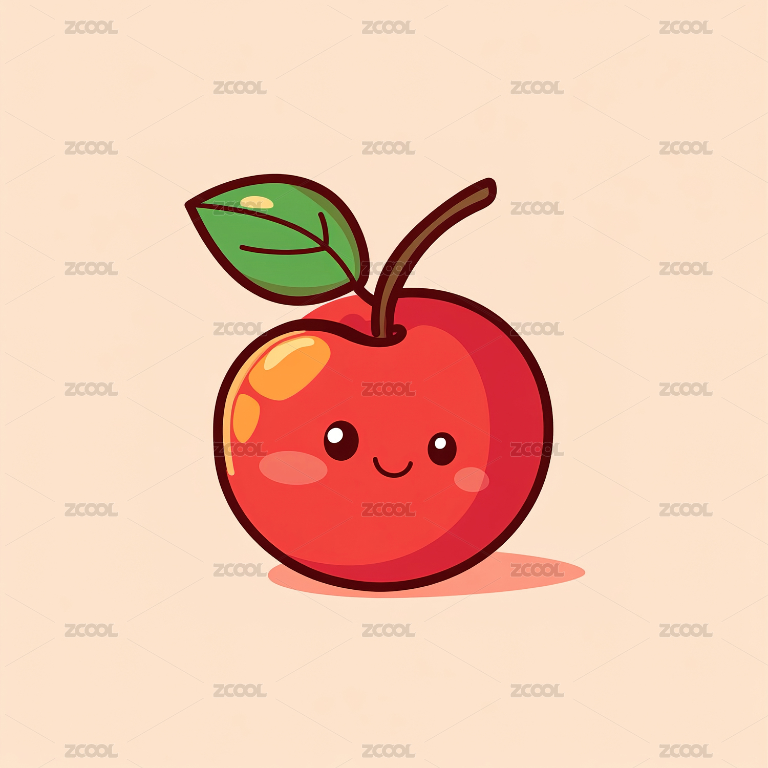 樱桃,水果,食物,甜食,红色,绿色,叶子,卡通,插画,素描