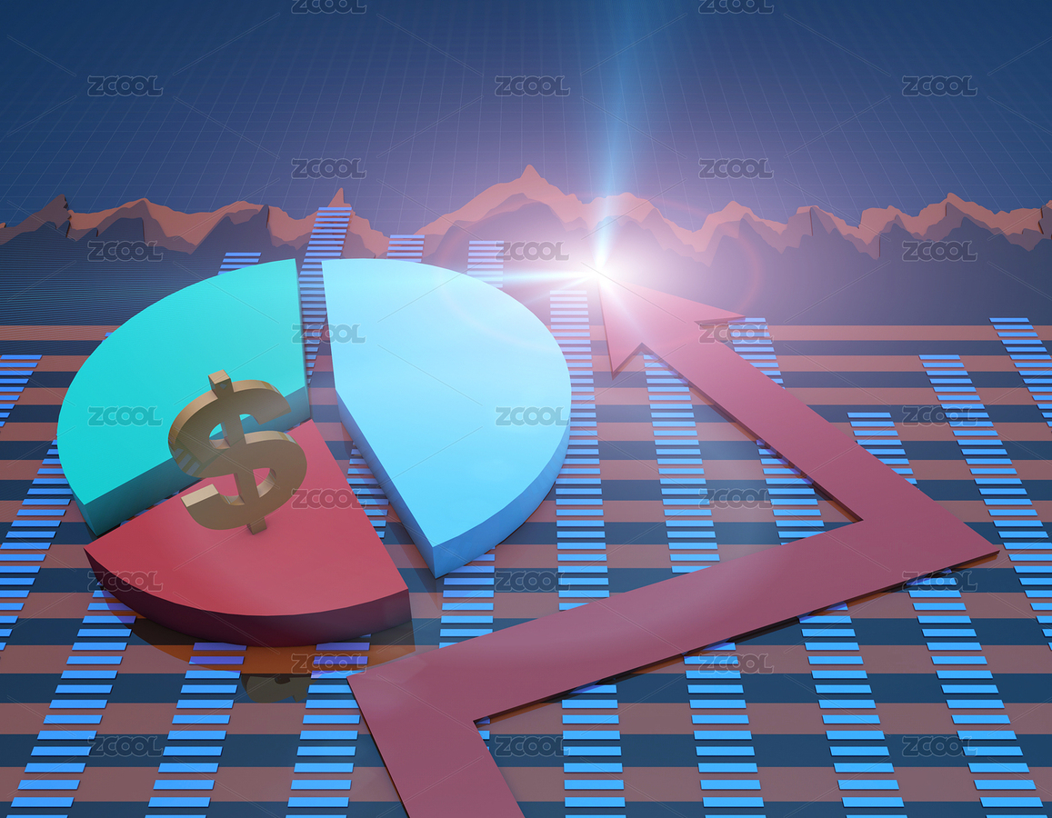 成功箭头与饼状图,金融数据统计,美元符号