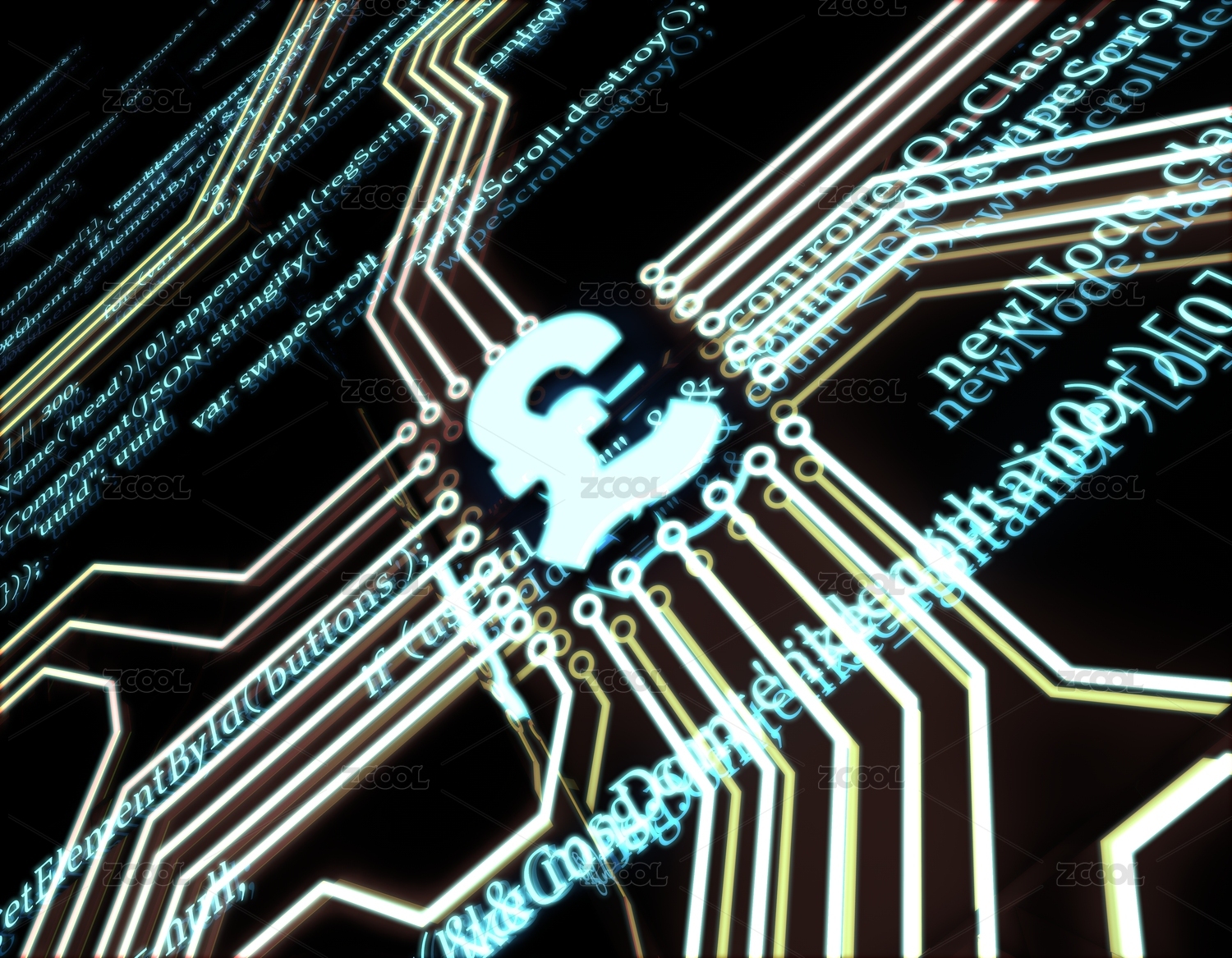 电子金融科技,网络数据传输,电路板与货币符号,英镑符号