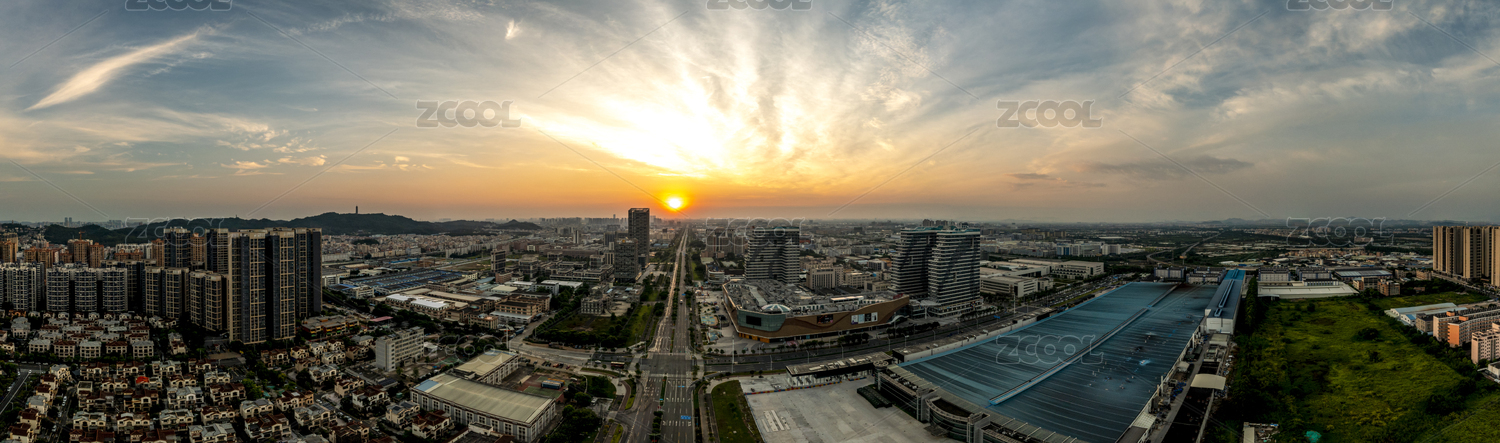 航拍广东省东莞华阳湖湿地公园周边的建筑群